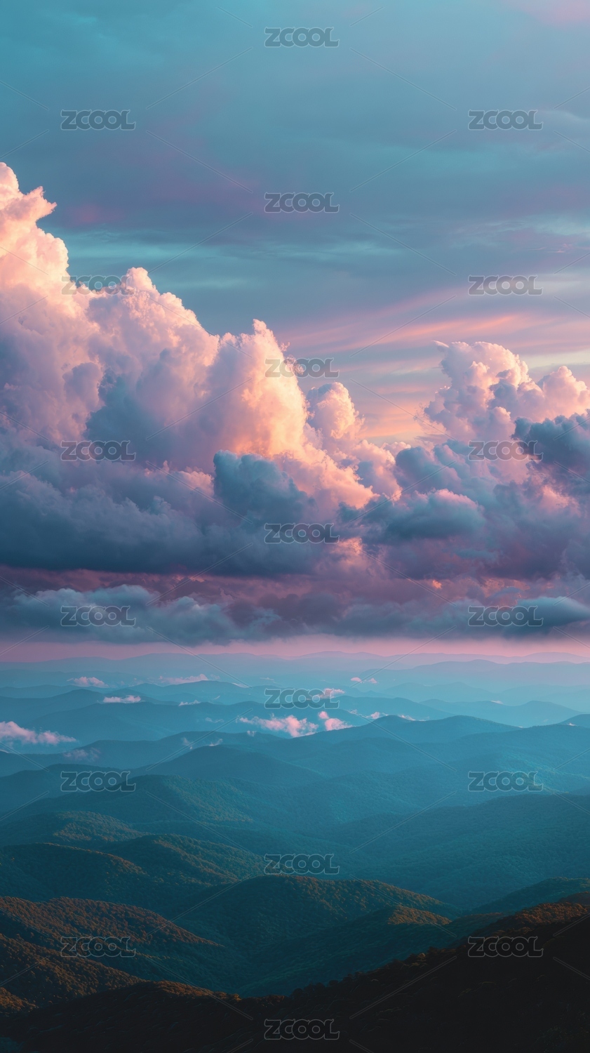 黄昏时分的山峰和云海,中国四川省峨眉山