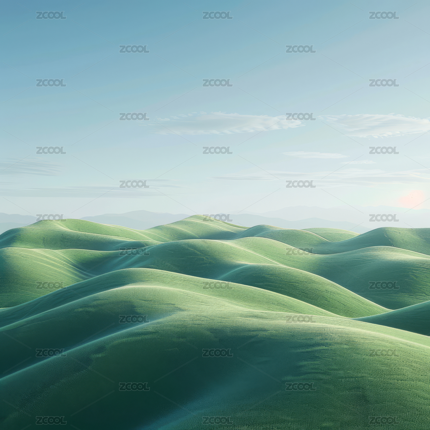 梦幻绿色山丘景观