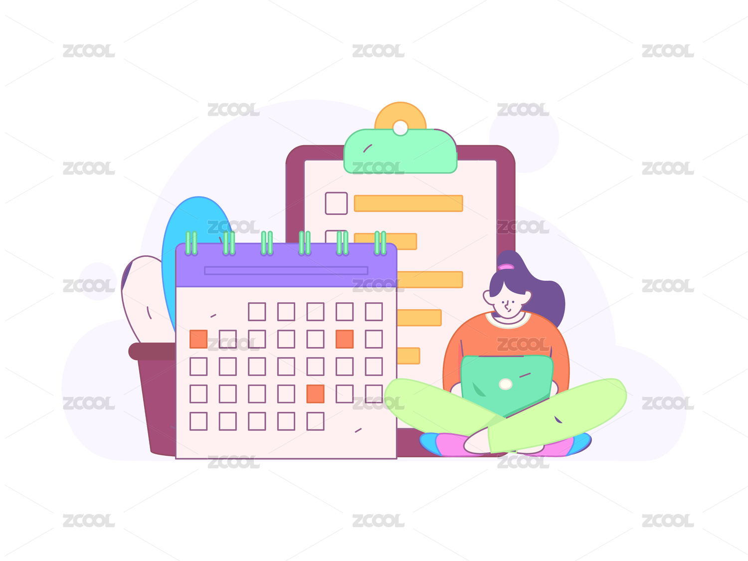 插画,矢量,彩色,日历,时间,工作规划,汇报,人物,书本,学习