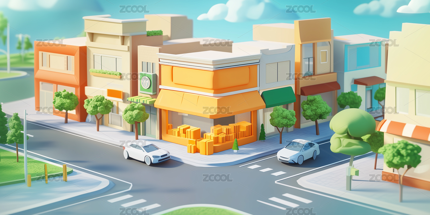 3d卡通风格的城市街道场景