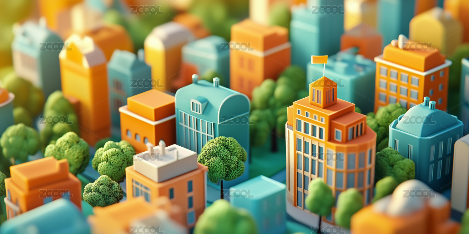 卡通城市三维建筑微缩场景