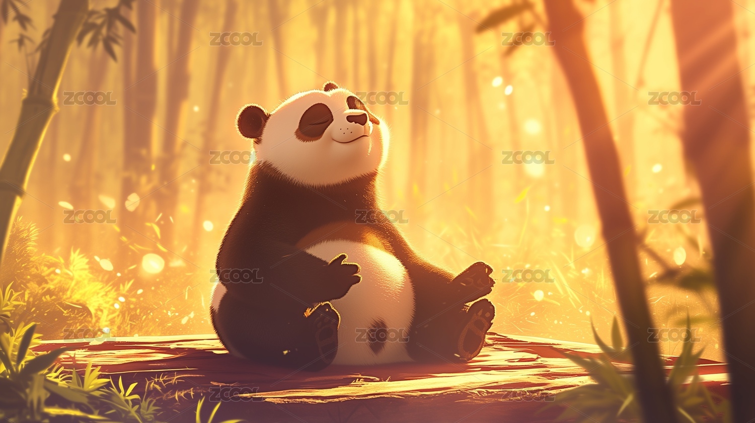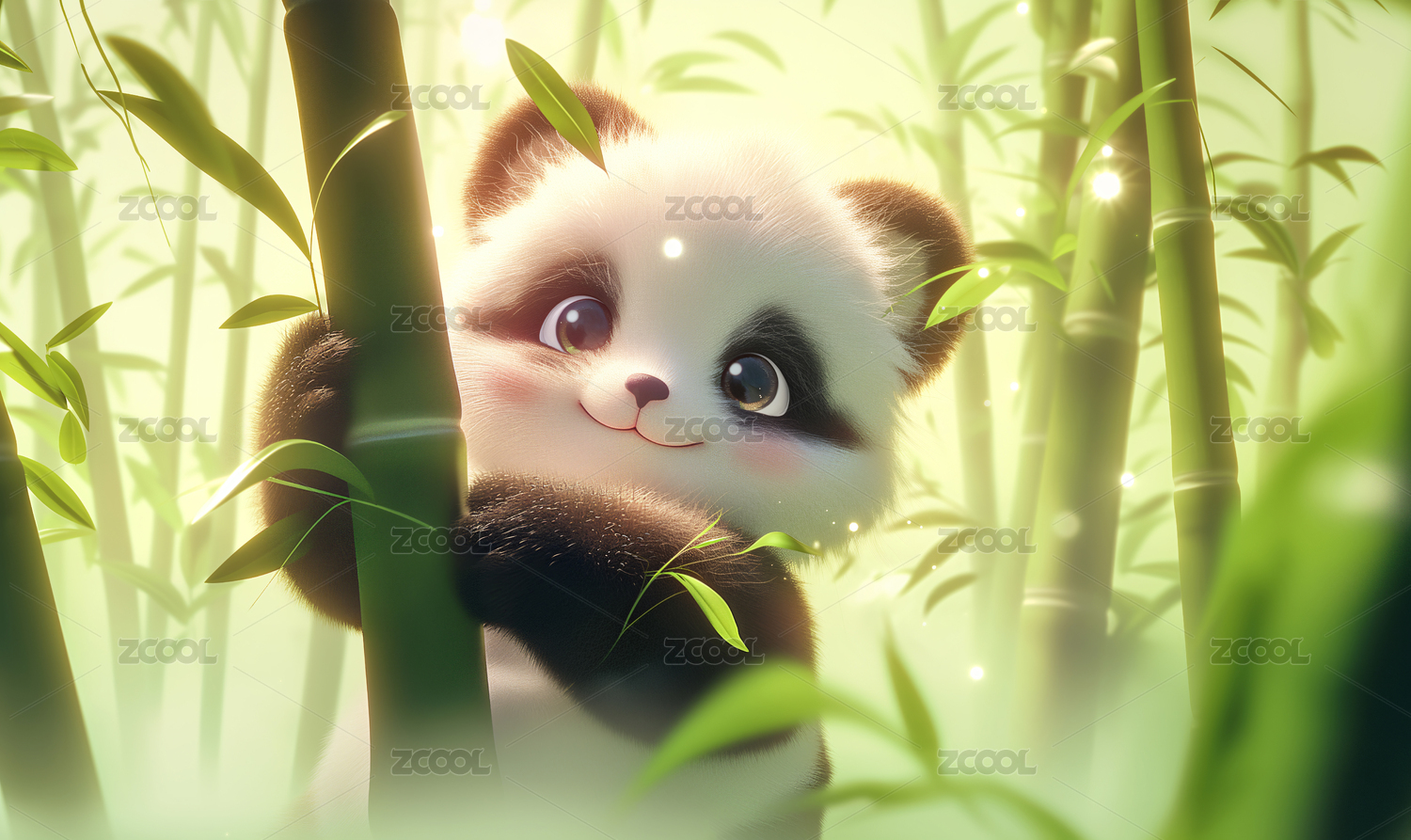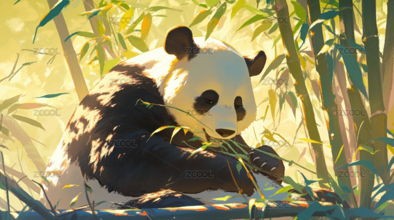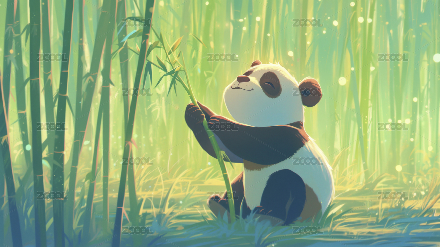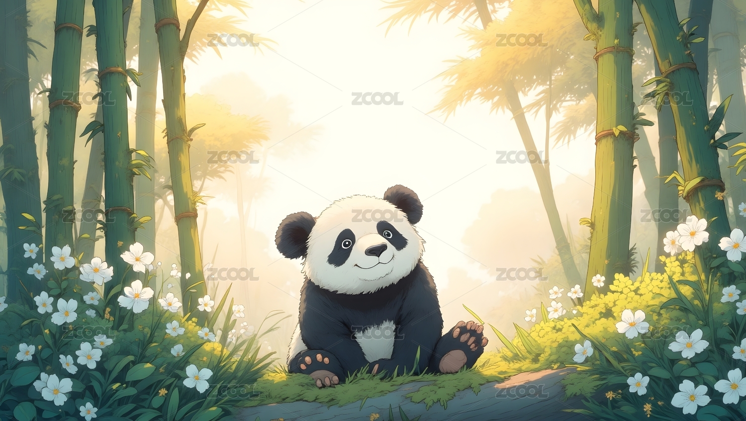 动物,写实,绘画,唯美,可爱,温馨,快乐,插画,AIGC202401,熊猫