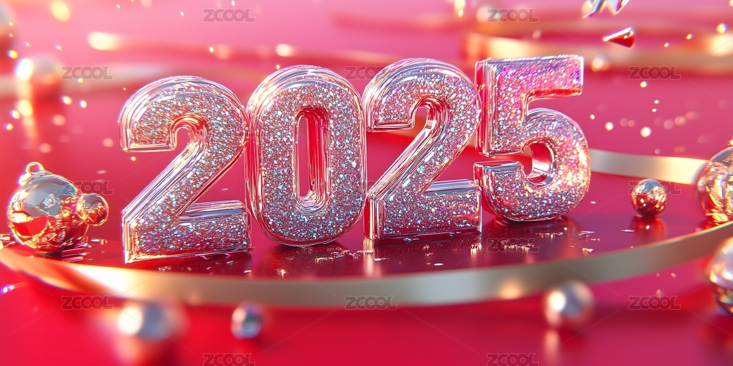 红色喜庆金色立体数字2025