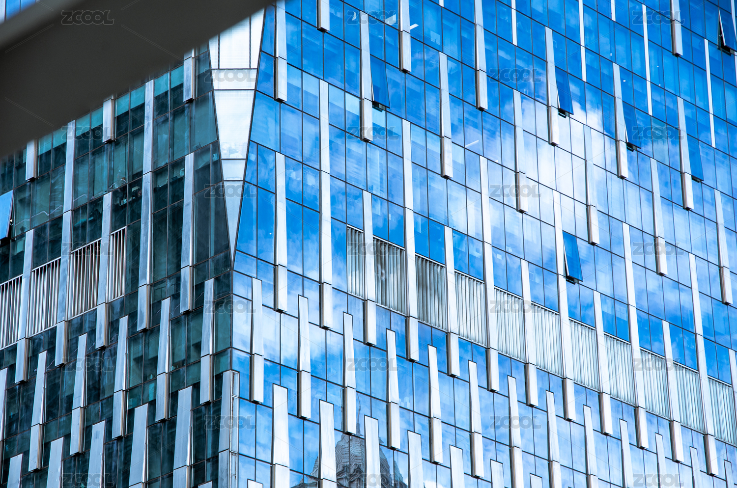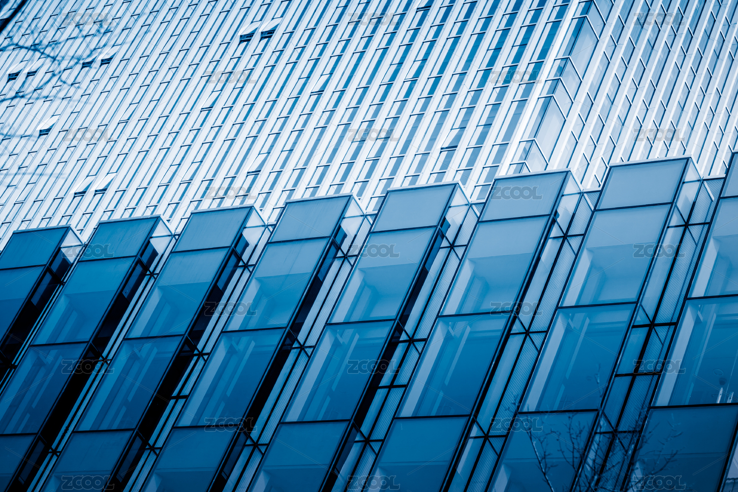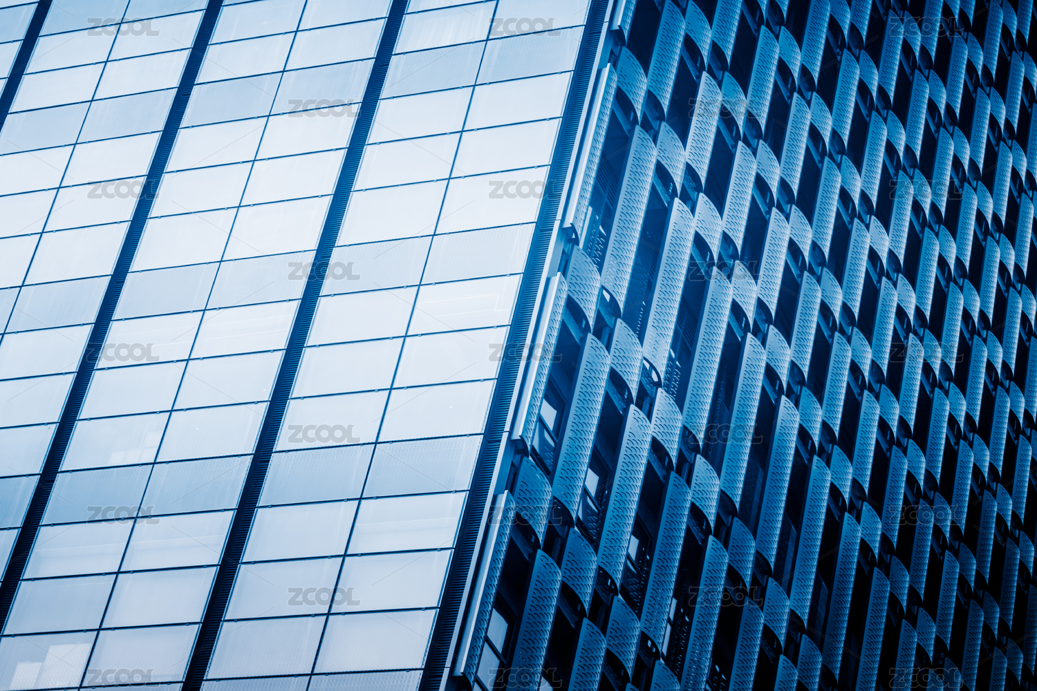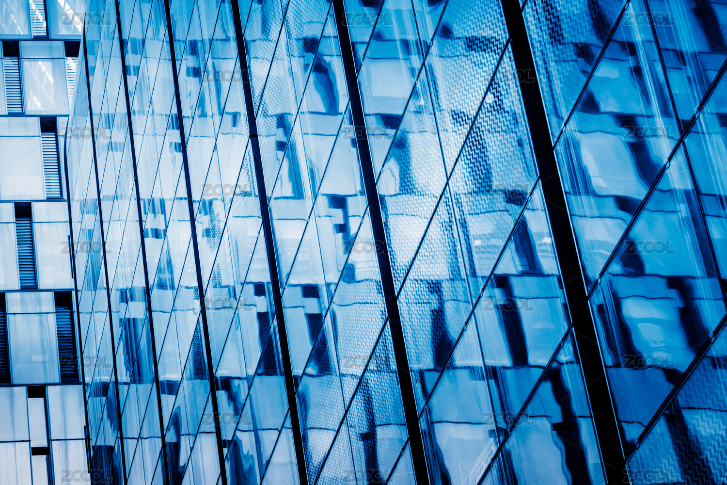 抽象的建筑摩天大楼的蓝色玻璃墙