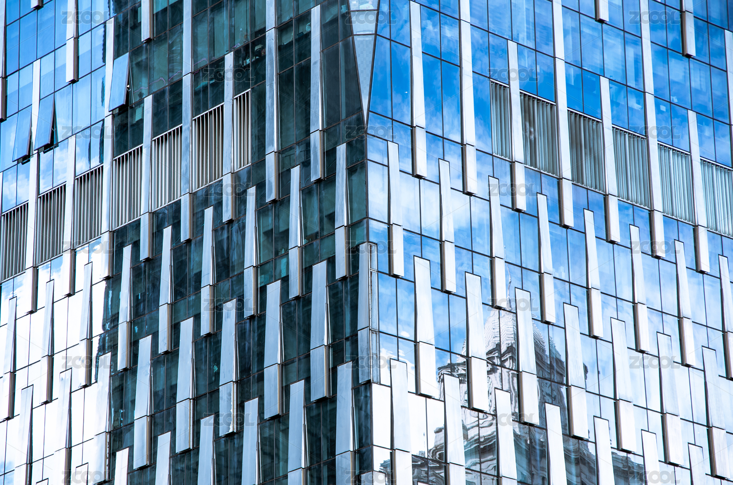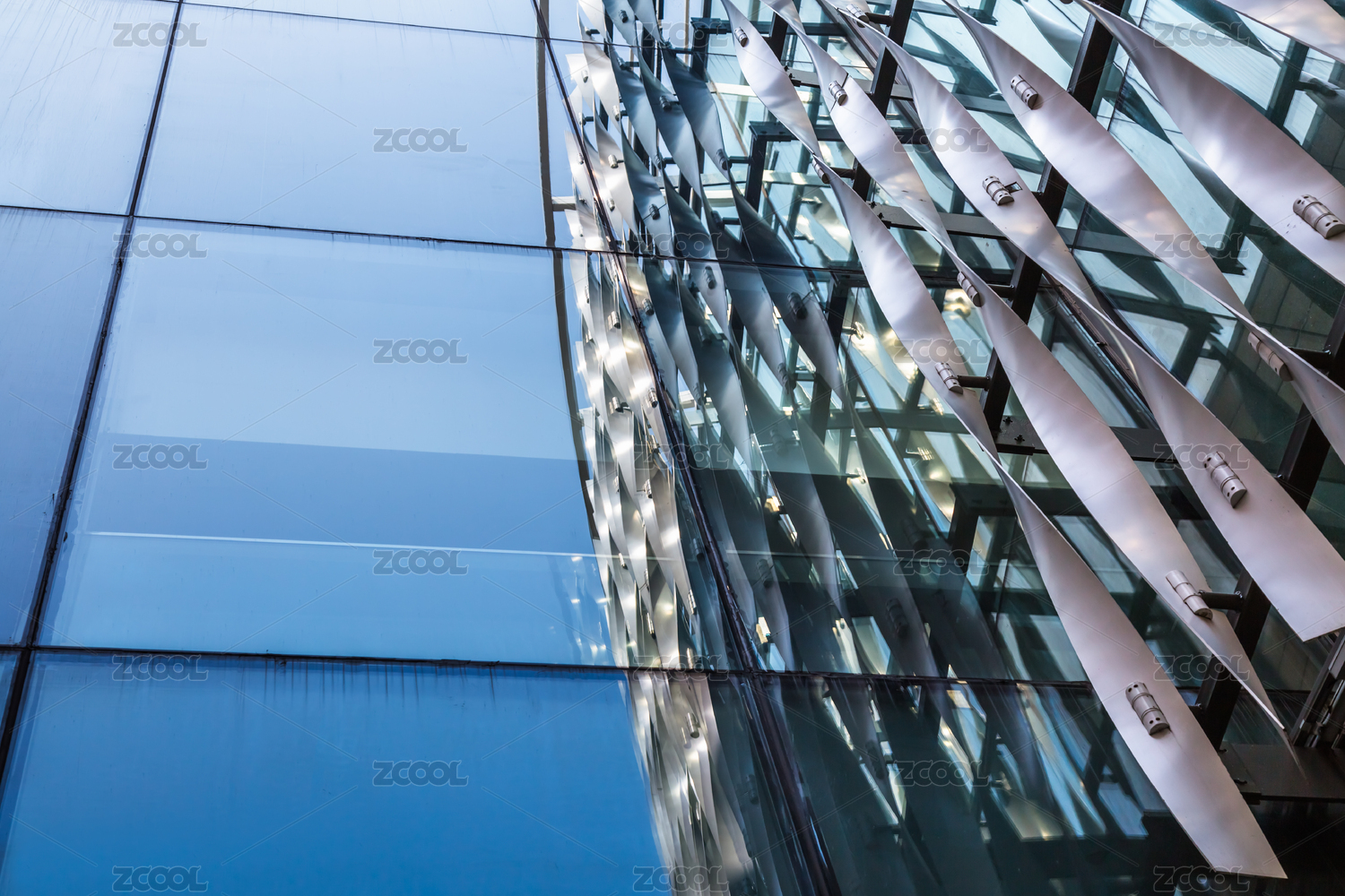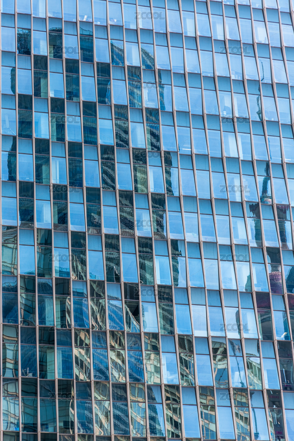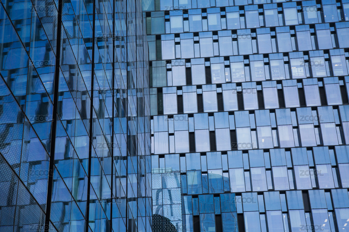 抽象的建筑摩天大楼的蓝色玻璃墙