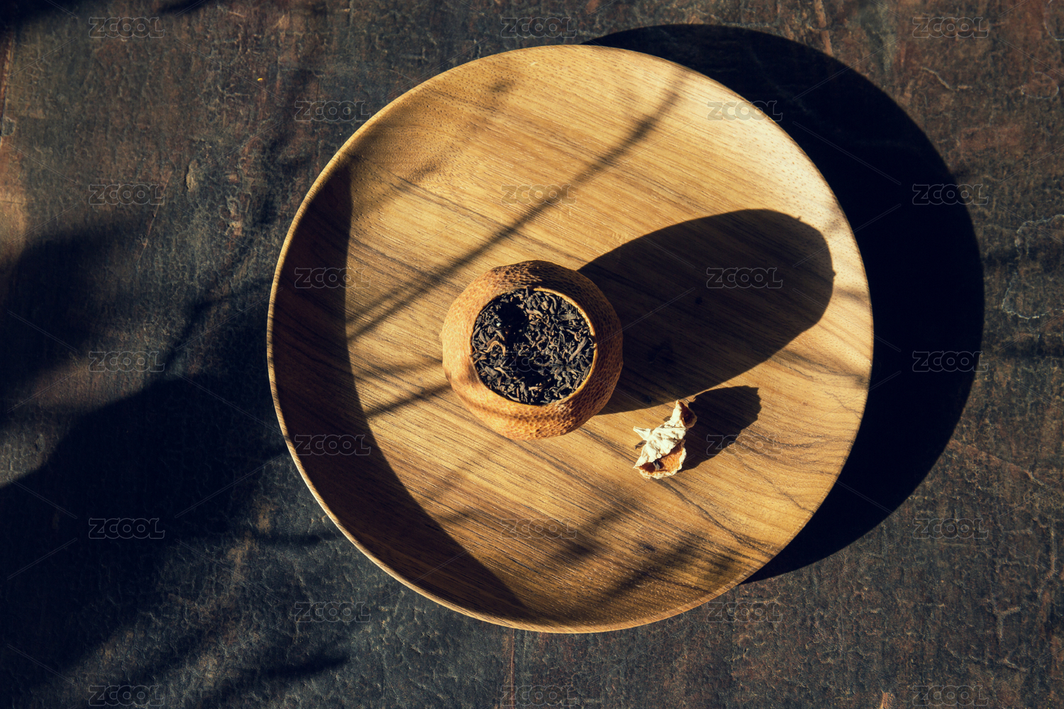 桌面上的盘子里的甘甜可口的银杏叶泡水