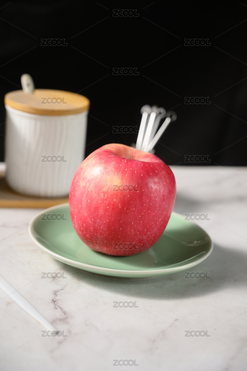 桌面上的盘子上的苹果