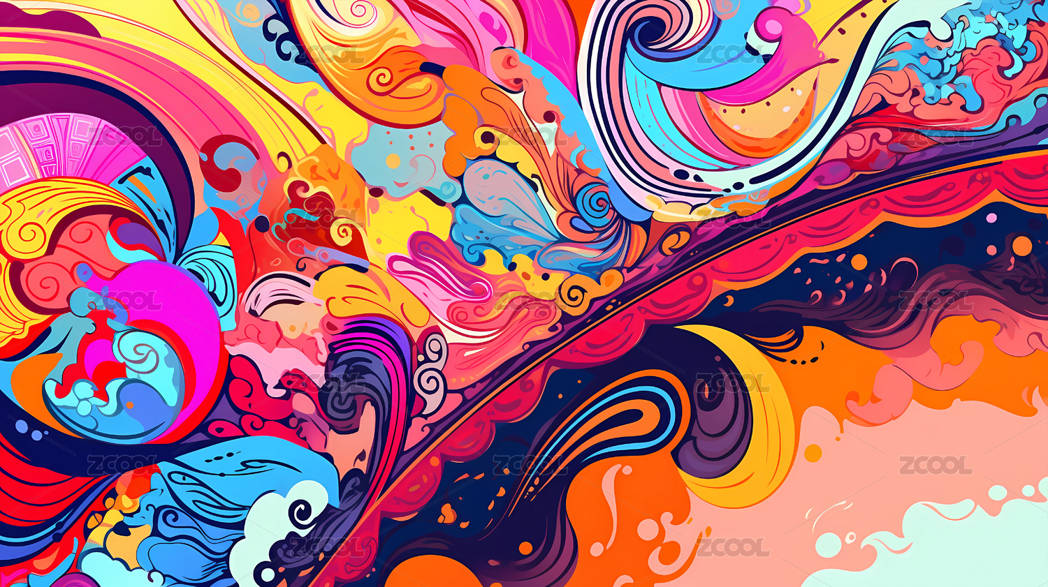 手绘卡通抽象艺术感彩色清新背景图片素材