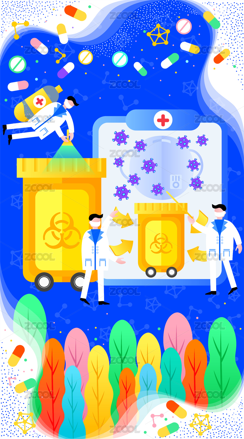 病毒感染口罩回收垃圾箱消毒扁平插画