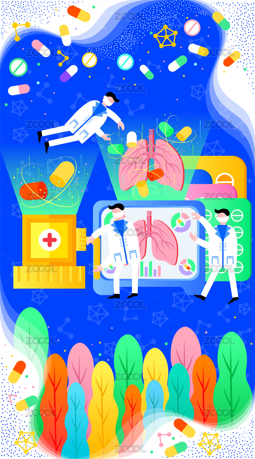 肺炎疫苗药物研制炫彩科技风矢量插画