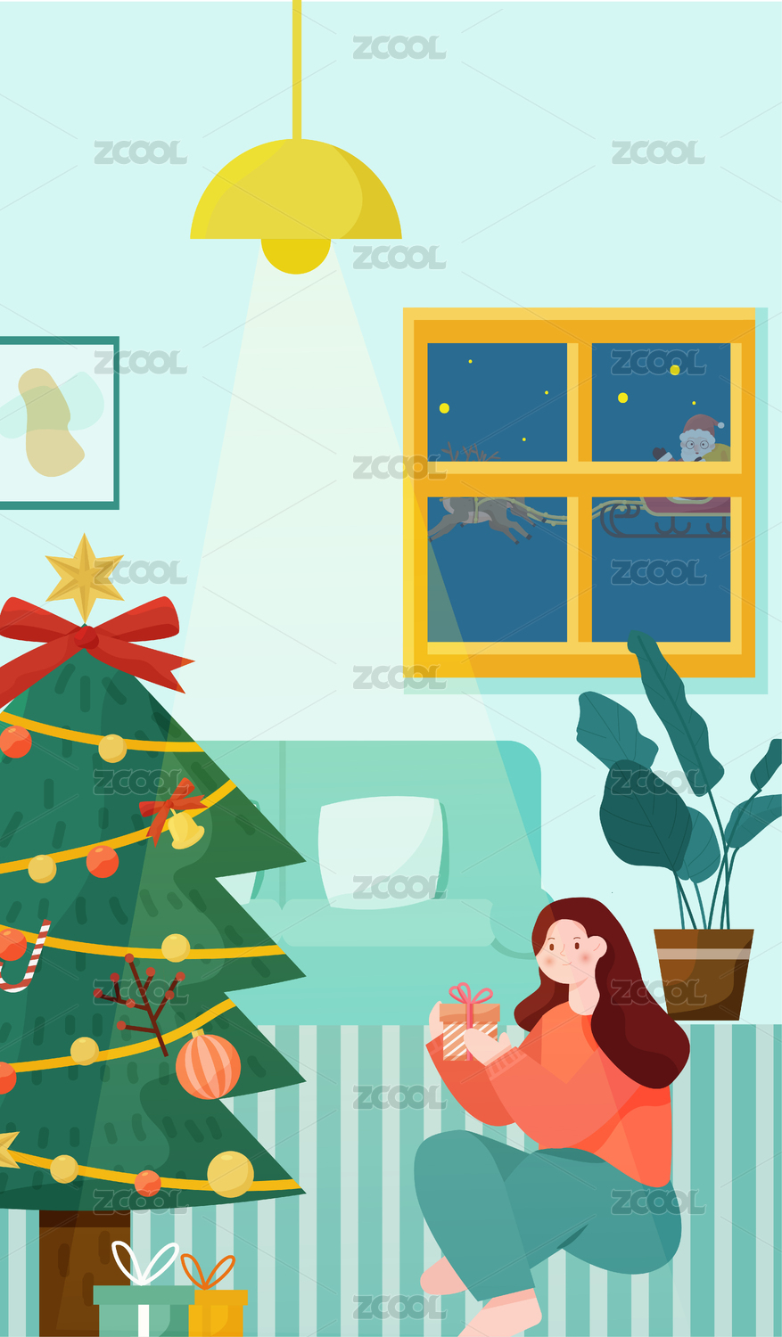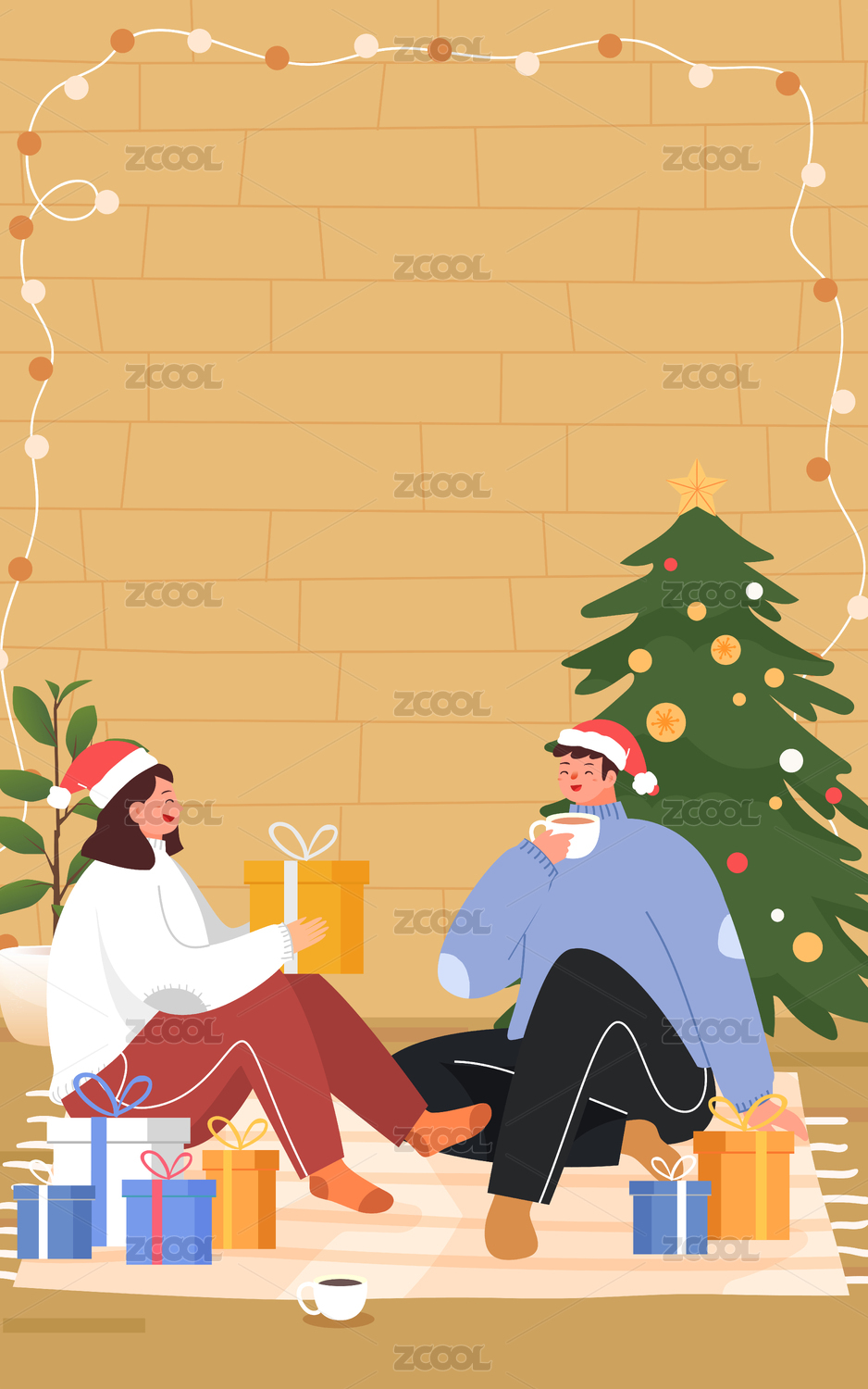卡通圣诞节平安夜朋友一起庆祝背景插画