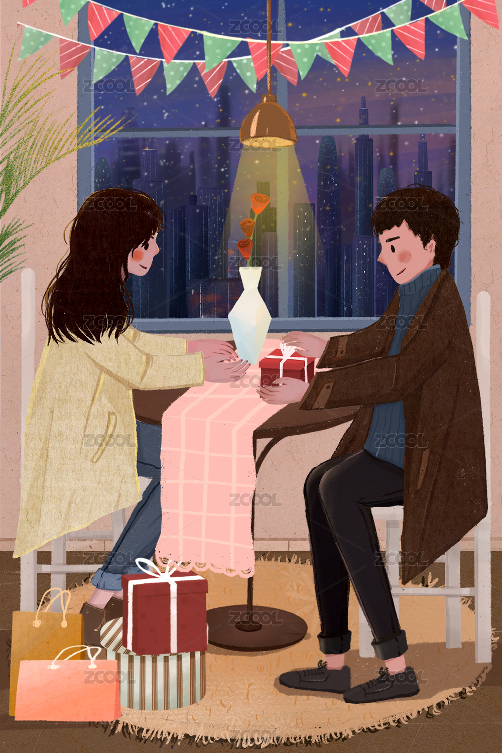 圣诞节,平安夜,冬季,情侣,约会,喝咖啡