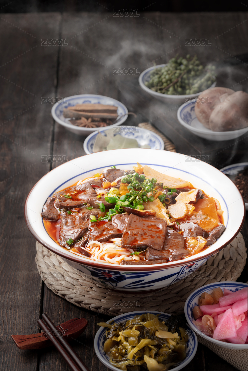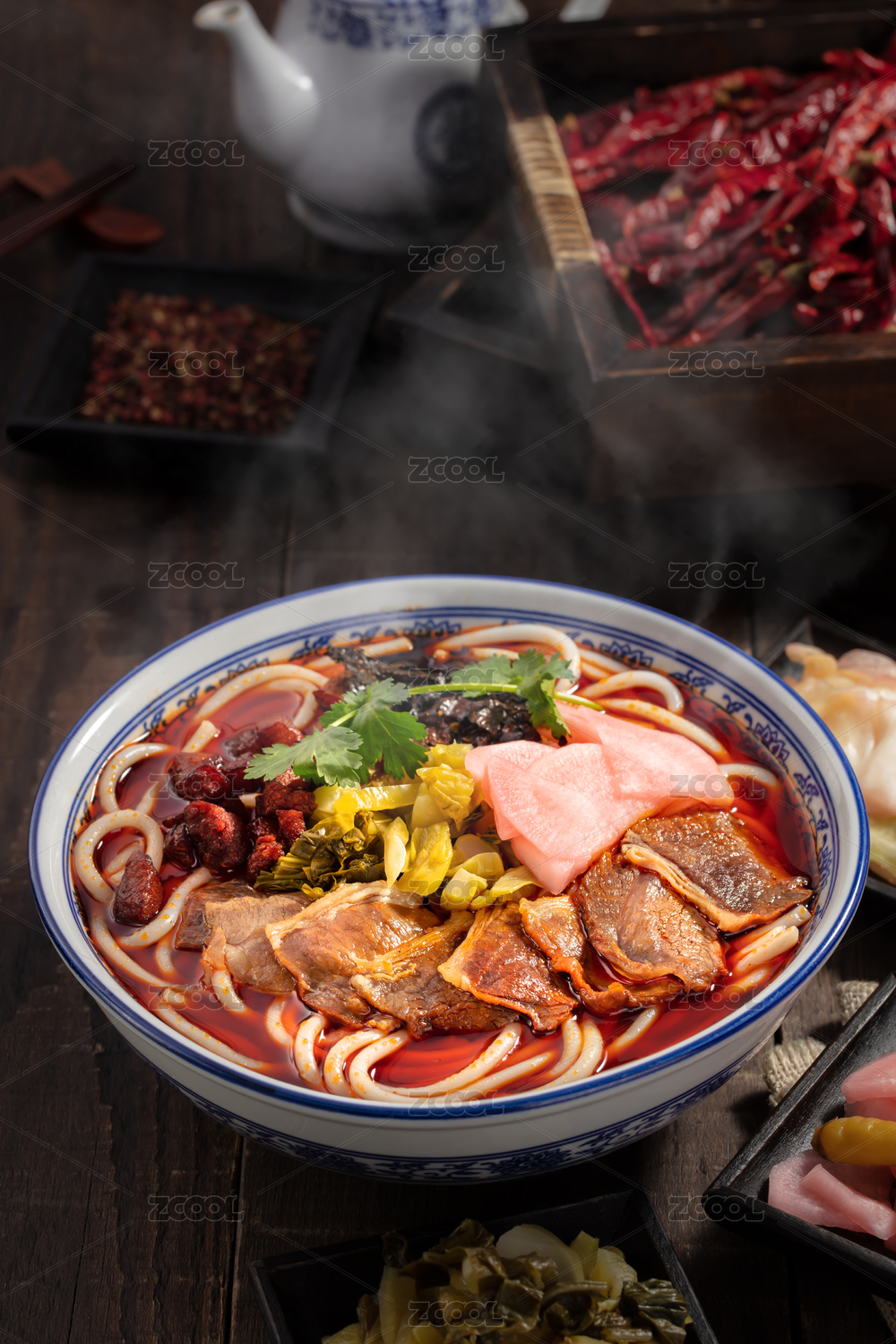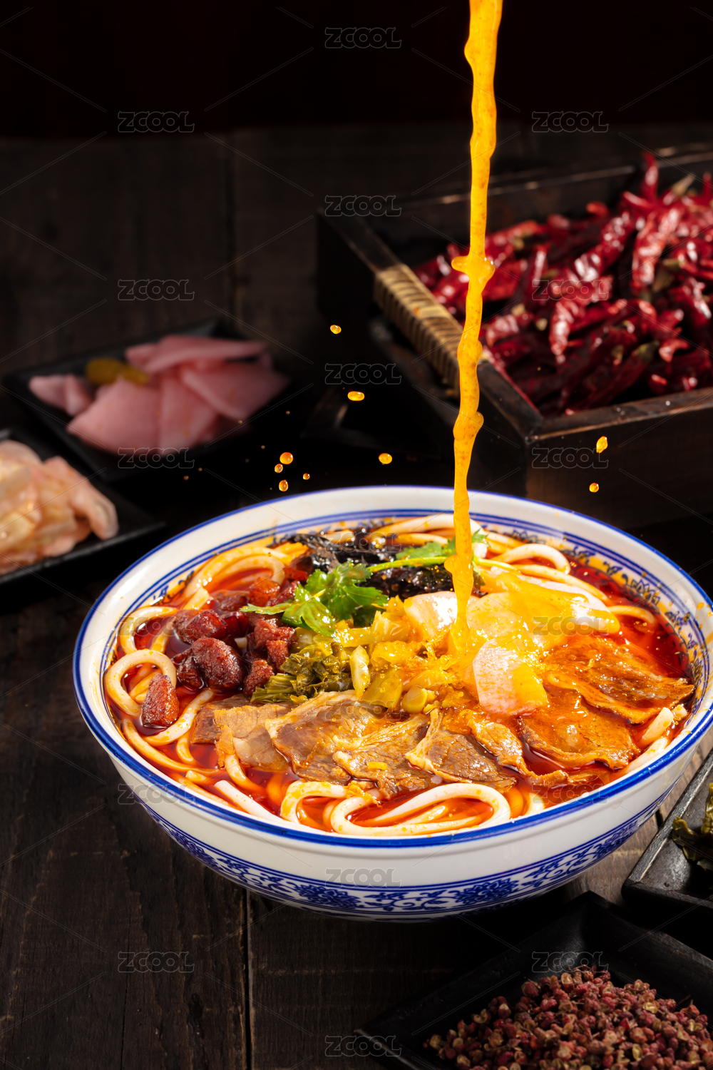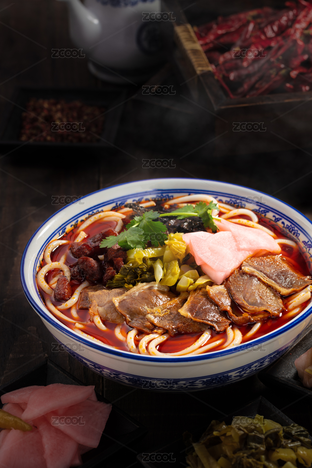 青花瓷大碗里的麻辣牛肉面重庆小面