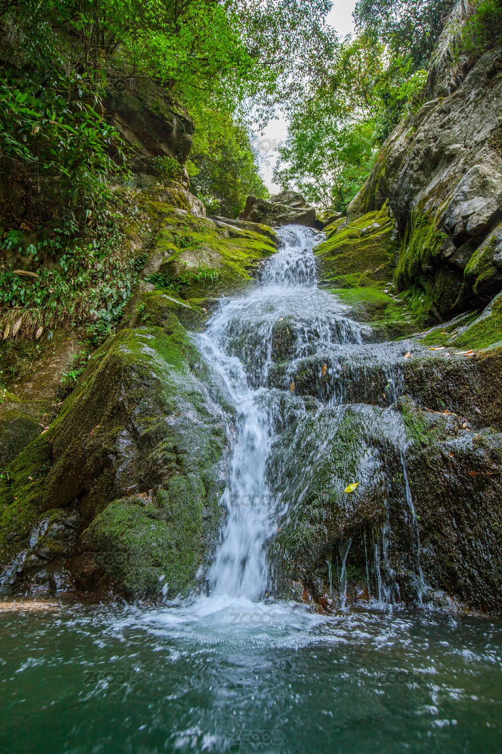 山西永济中条山雪花山风景区峭壁瀑布风景