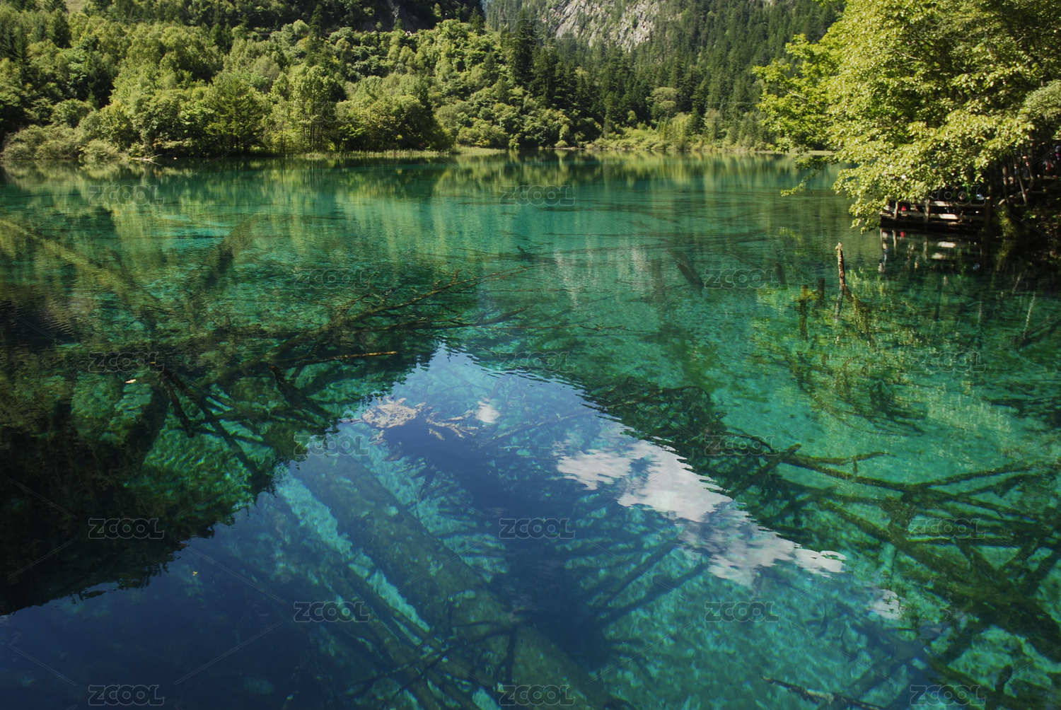 四川省阿坝九寨沟海子孔雀海及湖底的钙化木
