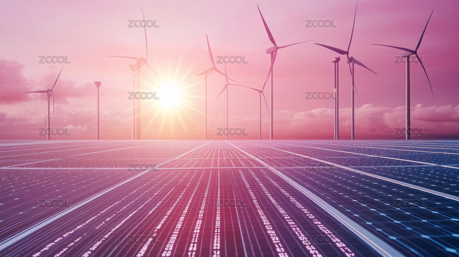 风力涡轮机太阳能电池板清洁绿色可再生能源