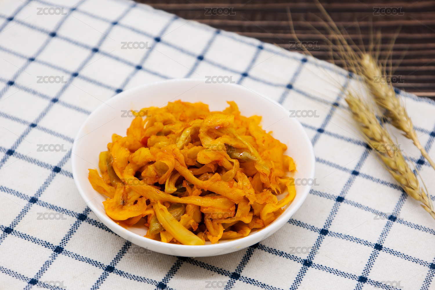 格子桌布背景一盘酱菜酱萝卜丝