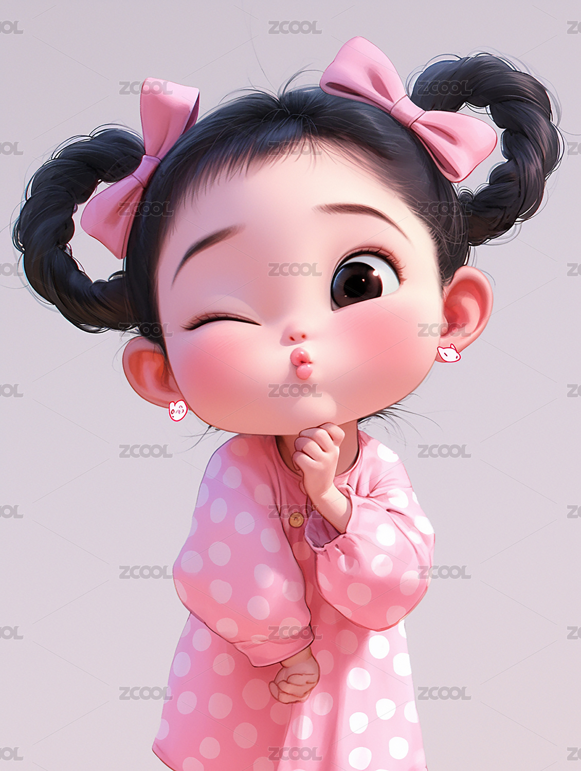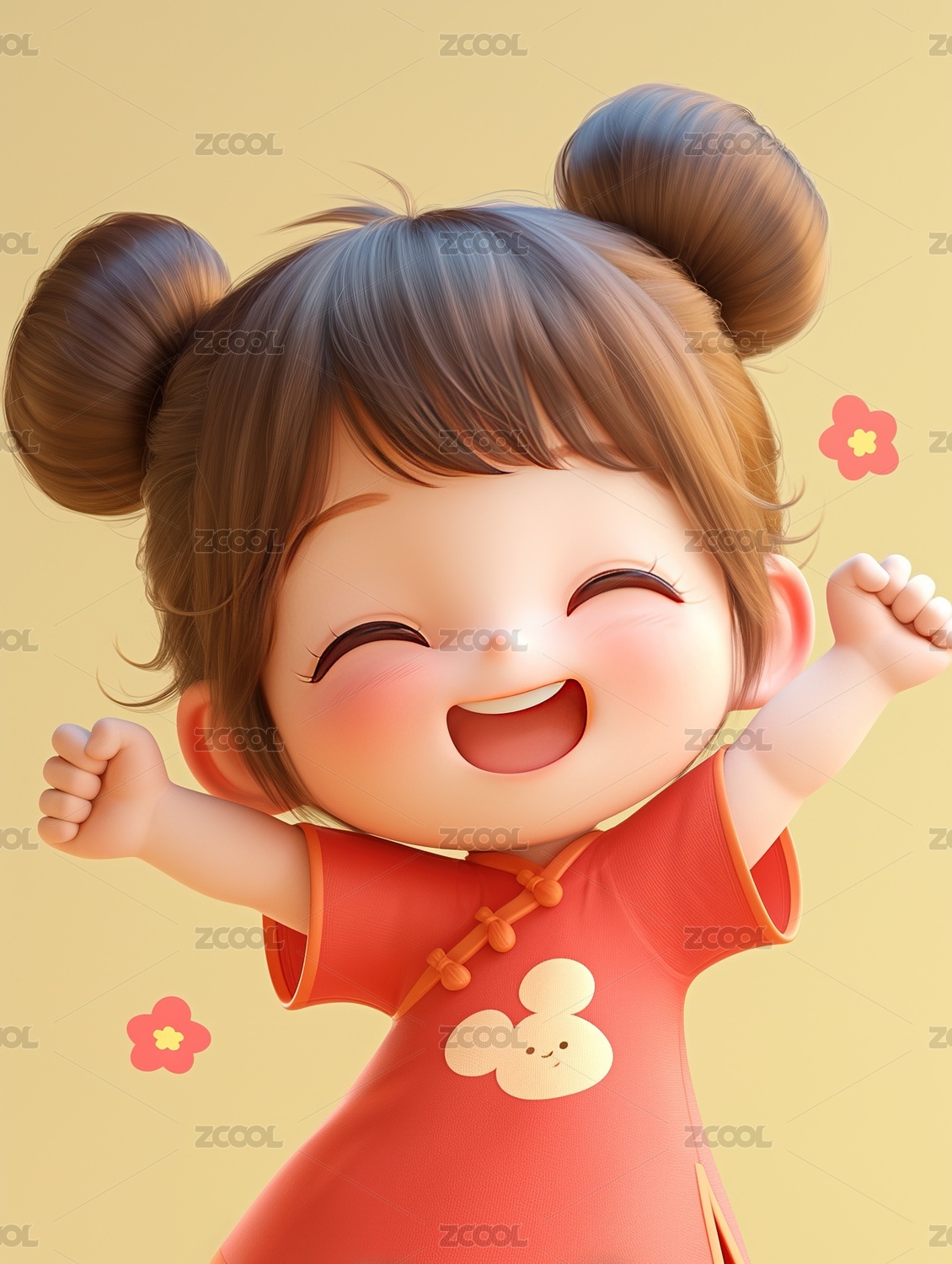 双丸子头卡通黄衣萌娃祈福可爱女孩3D插画