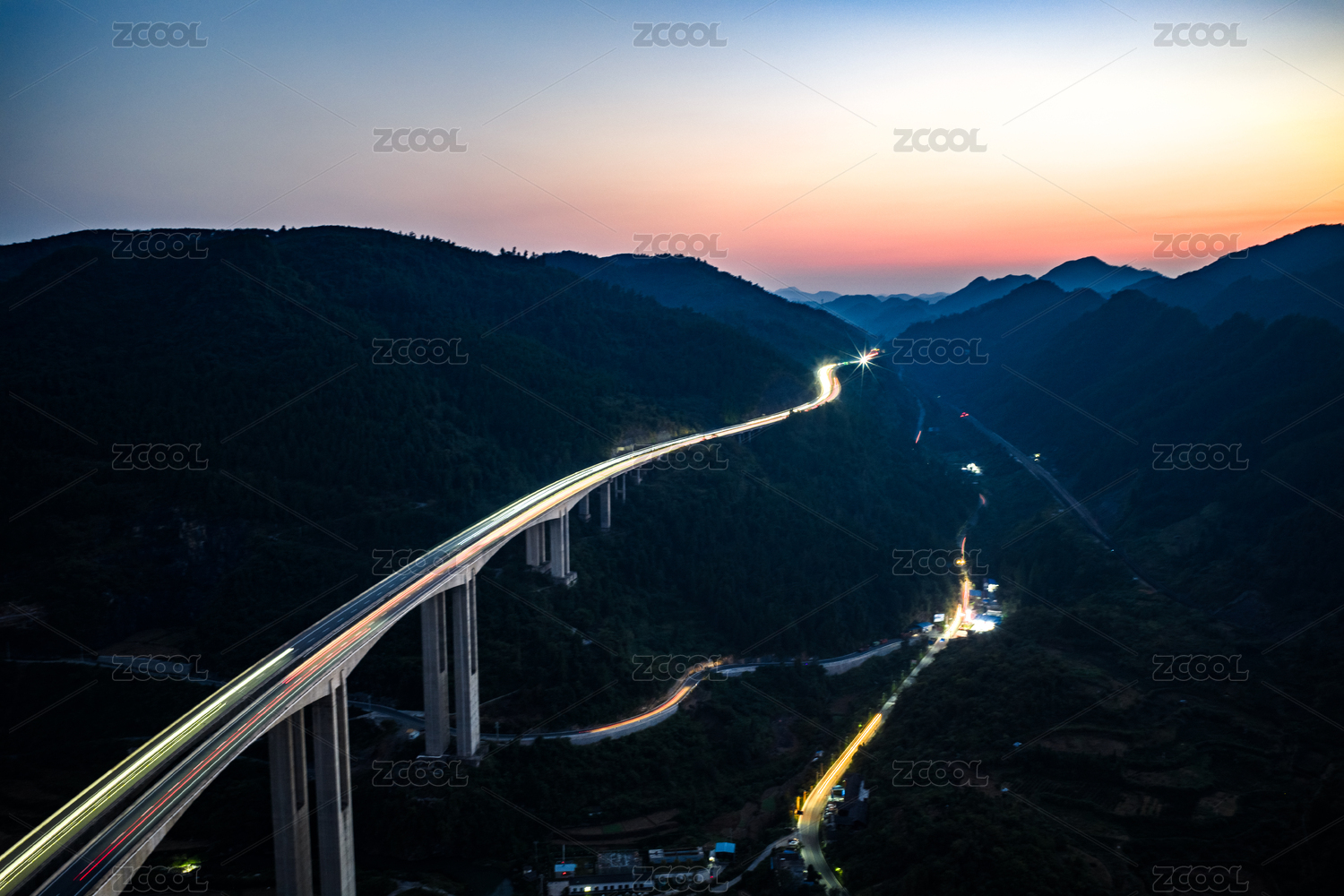 雅西高速段双螺旋结构干海子特大桥航拍夜景