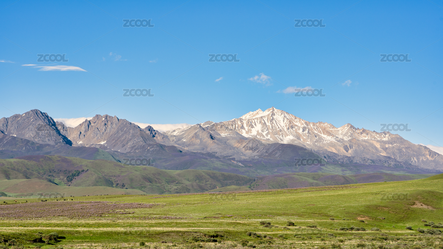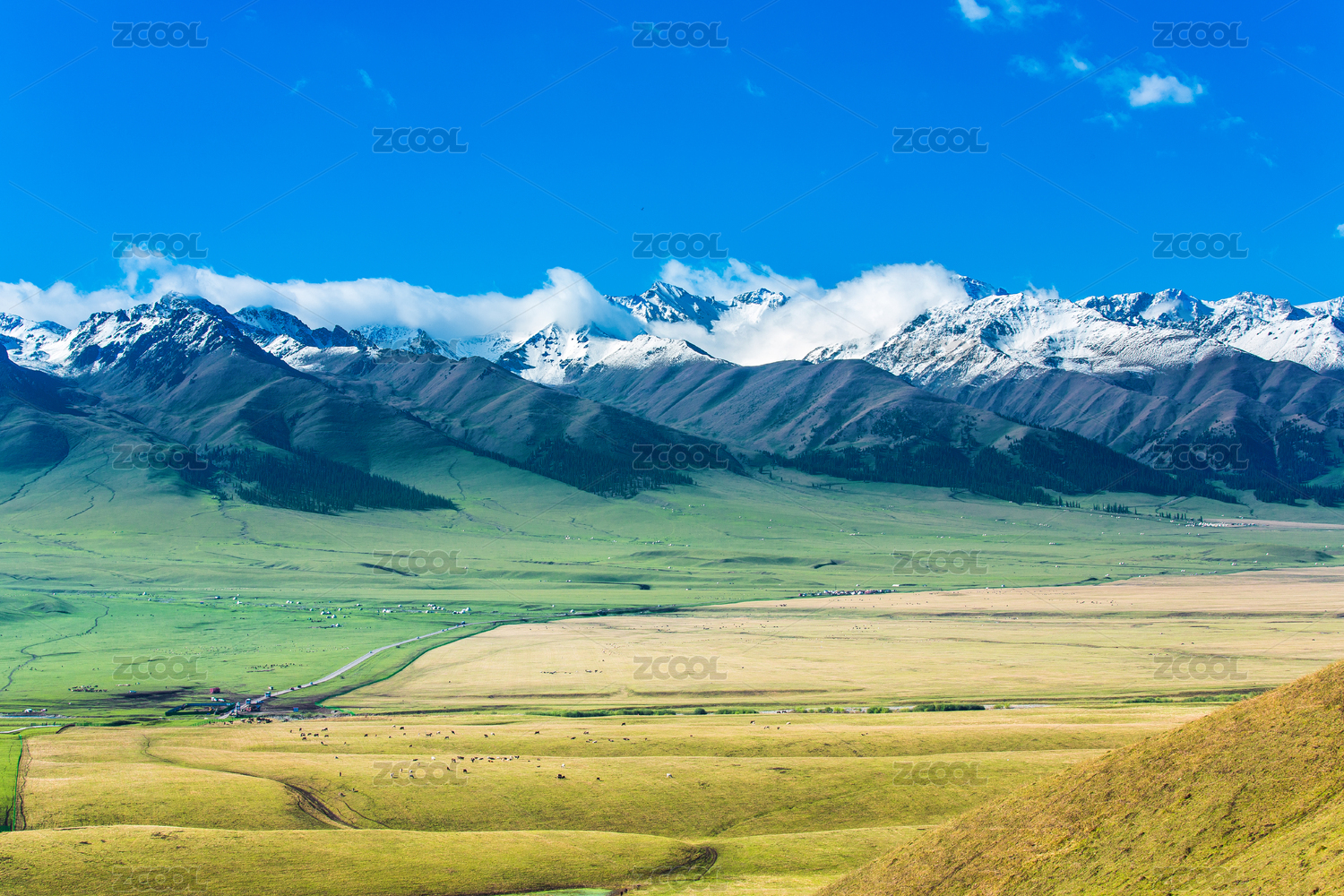 中国伊犁那拉提空中草原的雪山草地森林与牧
