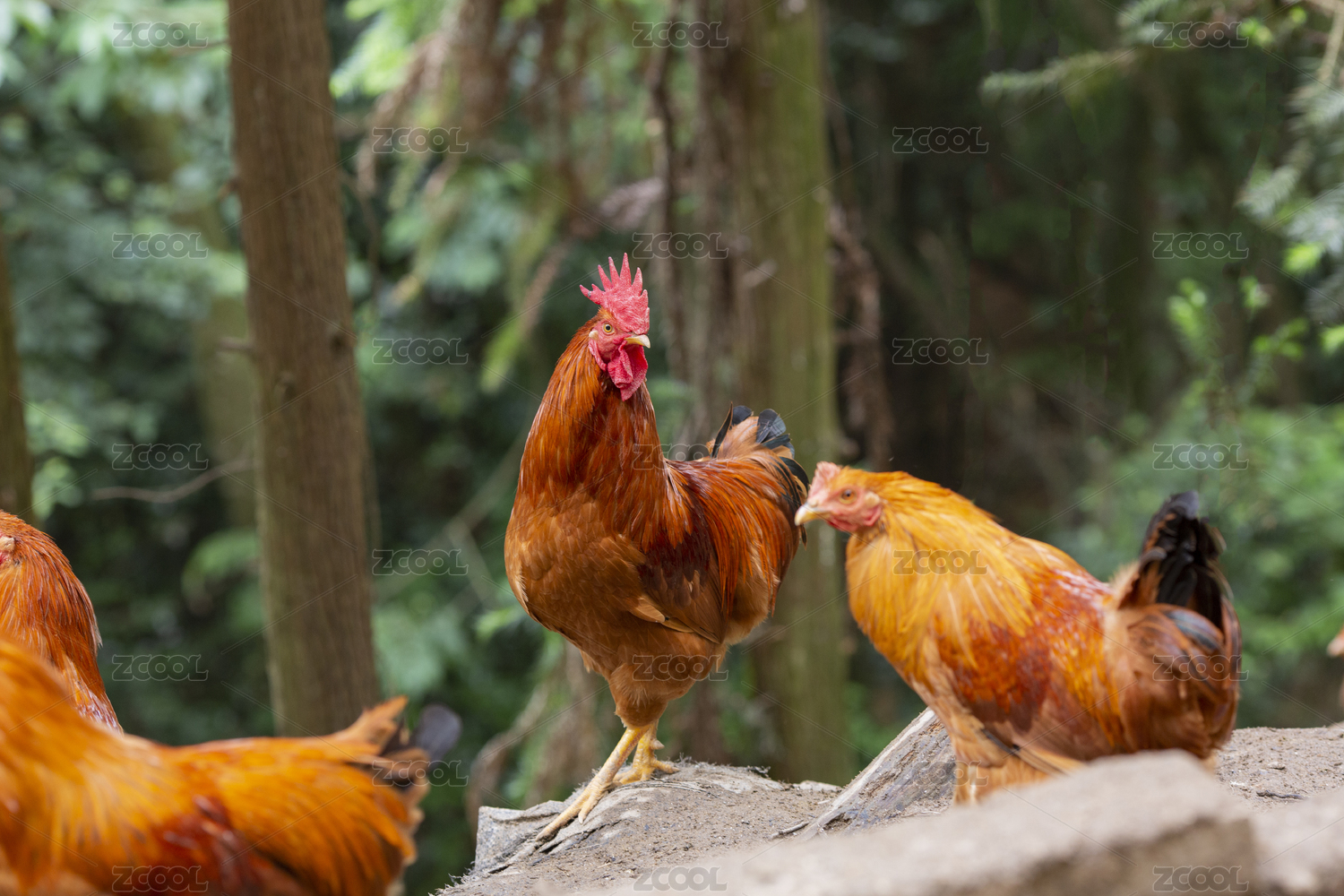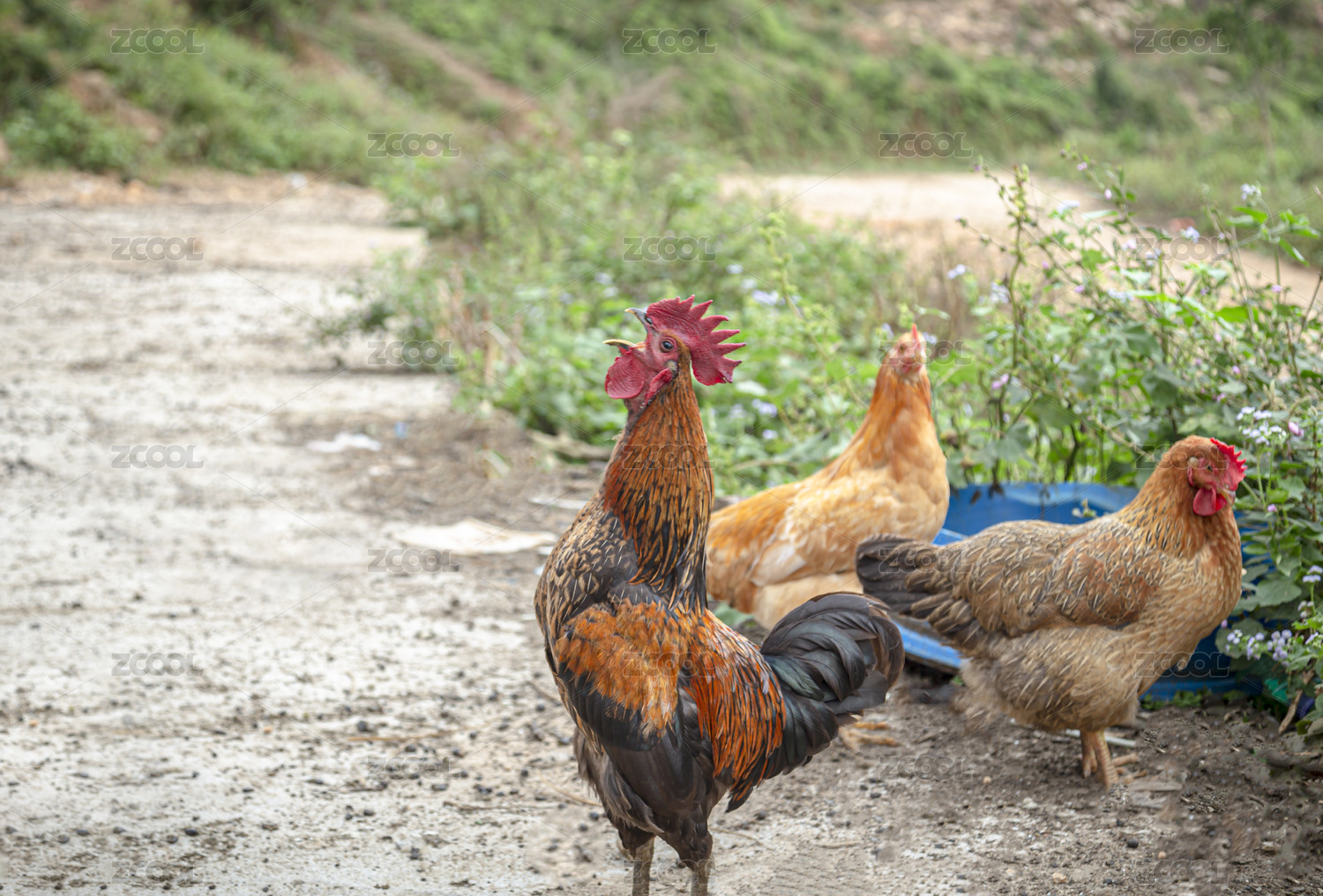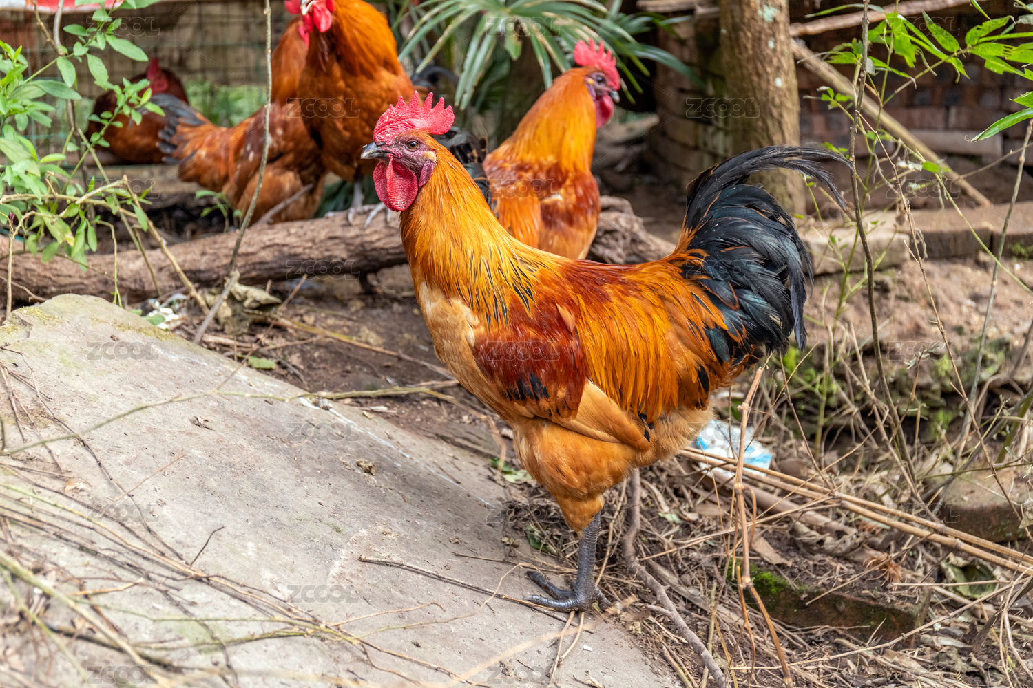 农村放养鸡