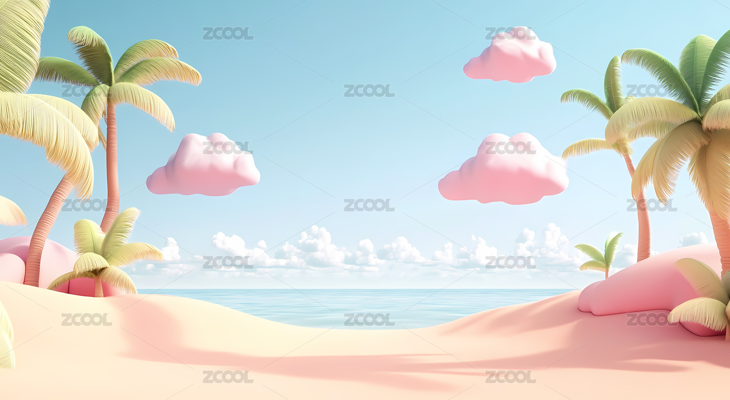 清透,梦幻,3d,展台,电商,清新,底座,夏天,海滩,沙滩