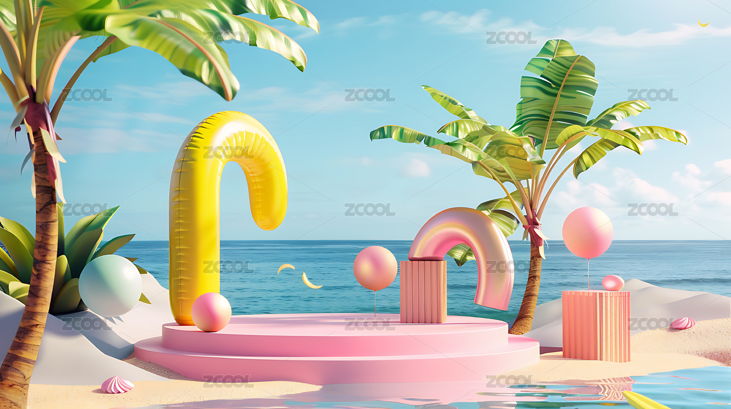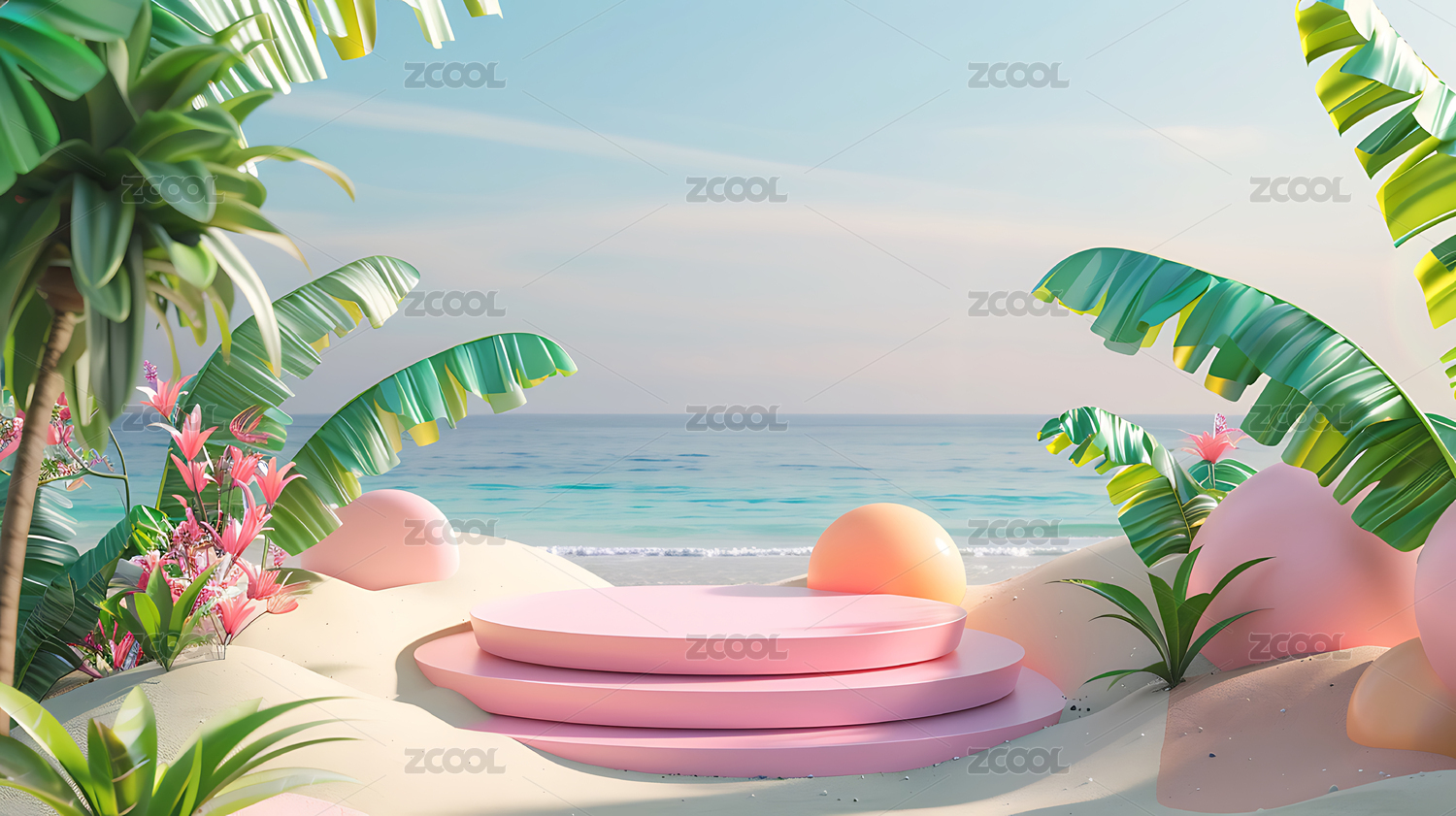 清透,梦幻,3d,展台,电商,清新,底座,夏天,海滩,沙滩