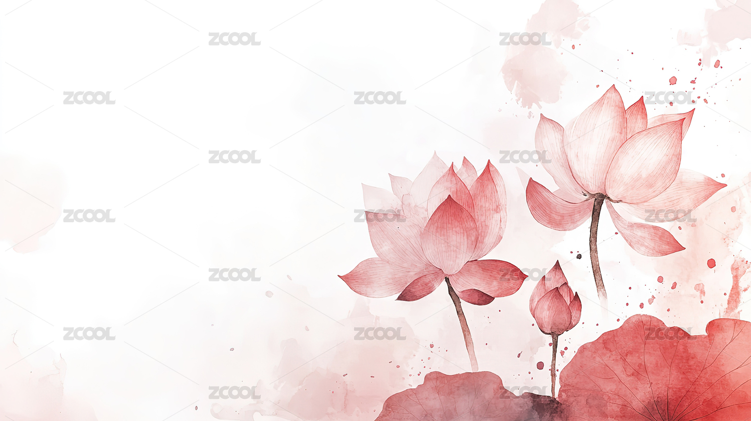 水彩莲花意境图