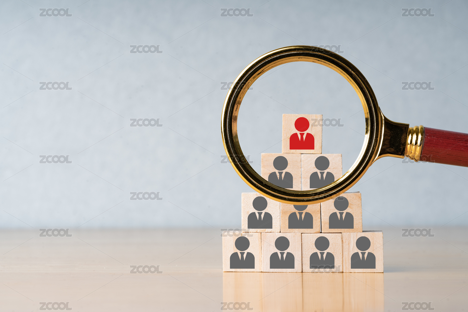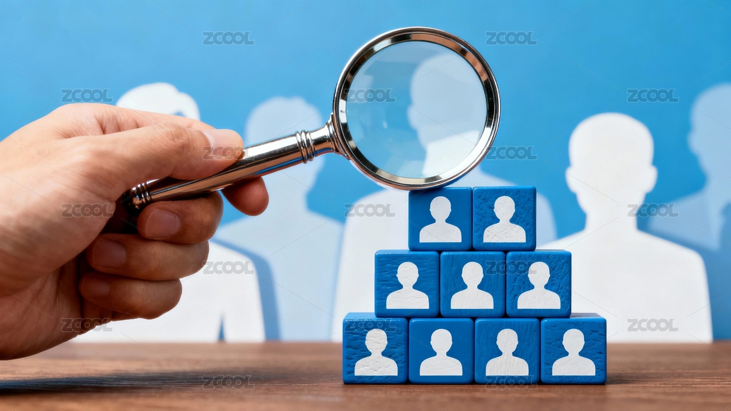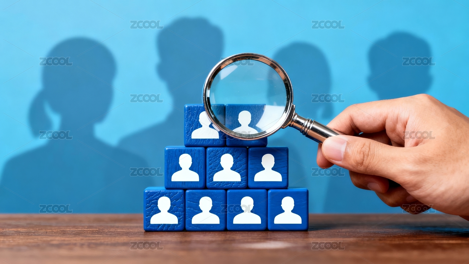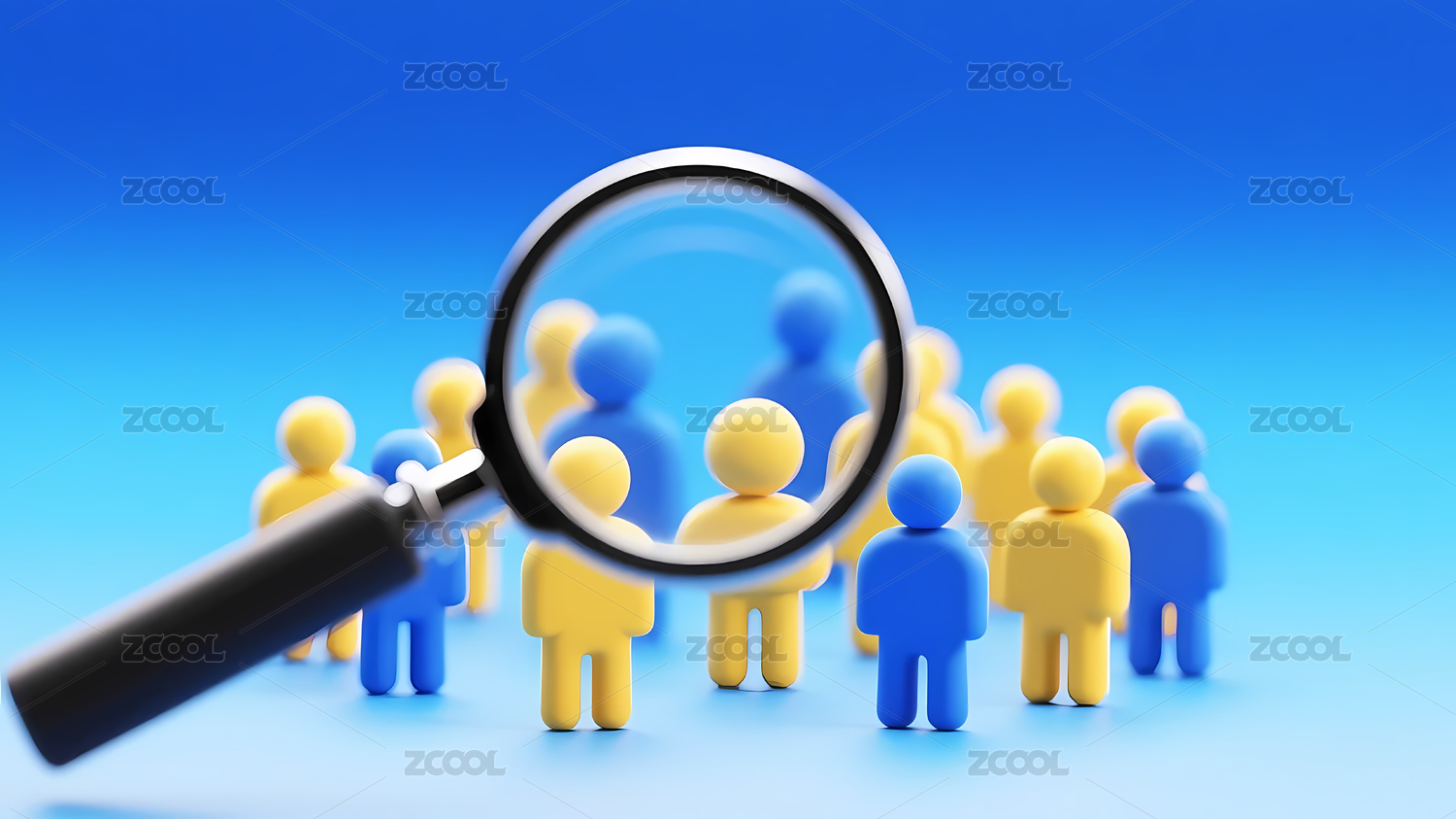 放大镜聚焦于蓝色小人