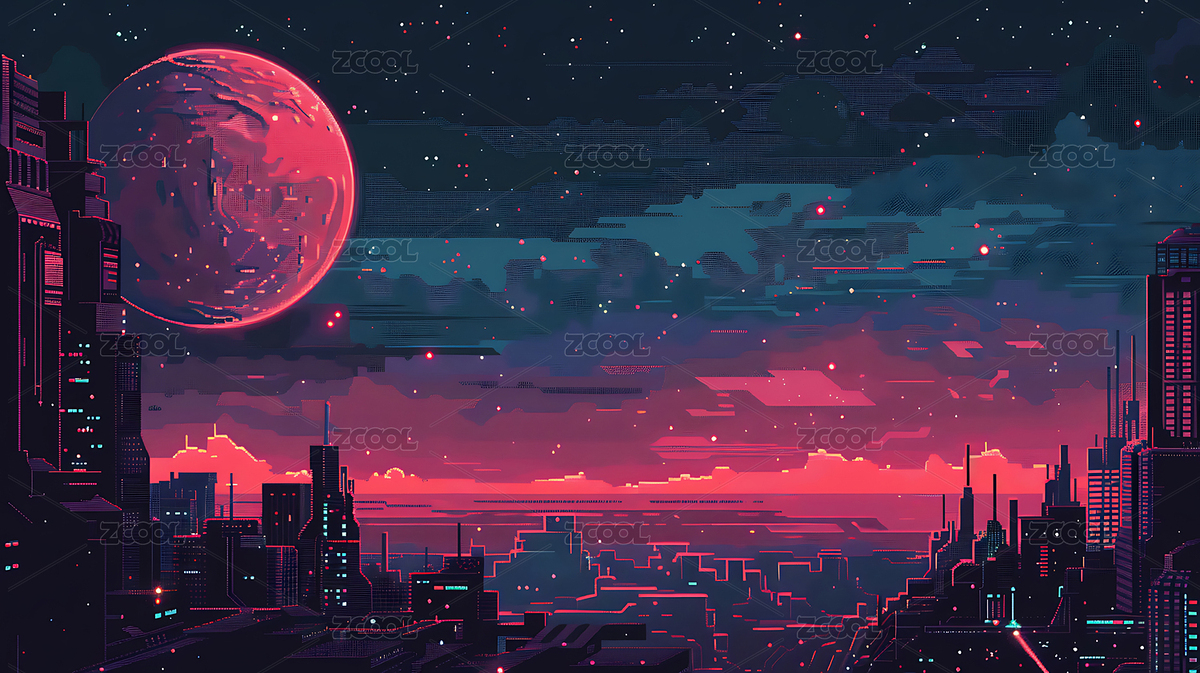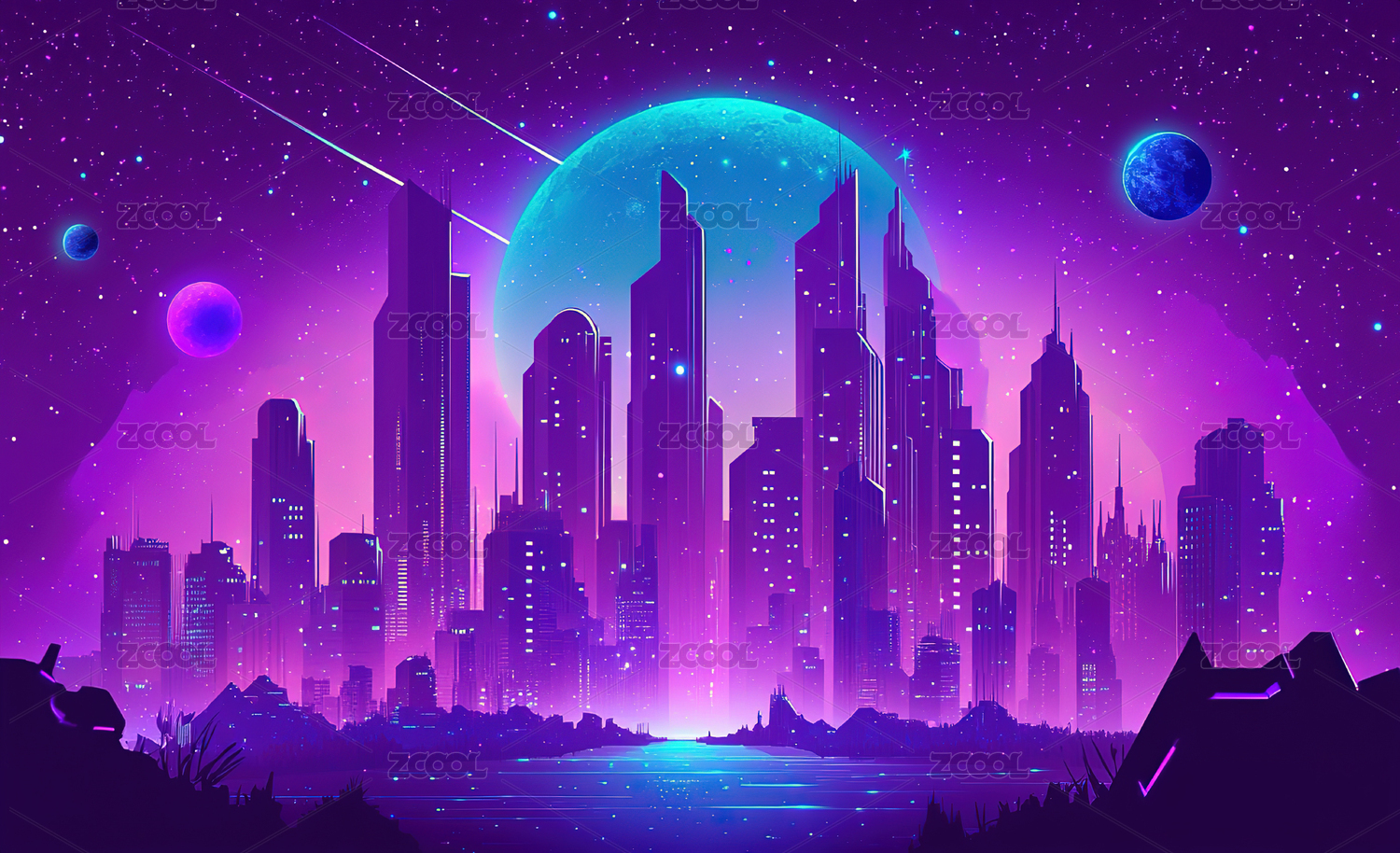 科幻,渐变,风景,自然,星云,星空,湖面,月亮