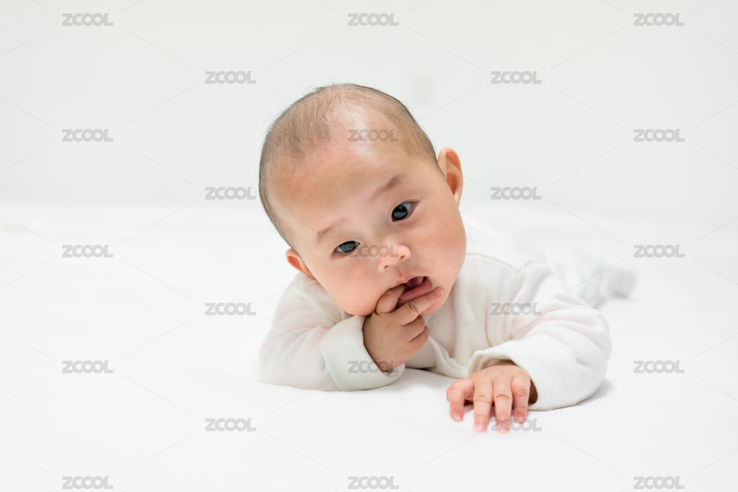 身穿白色衣服白色背景的婴儿