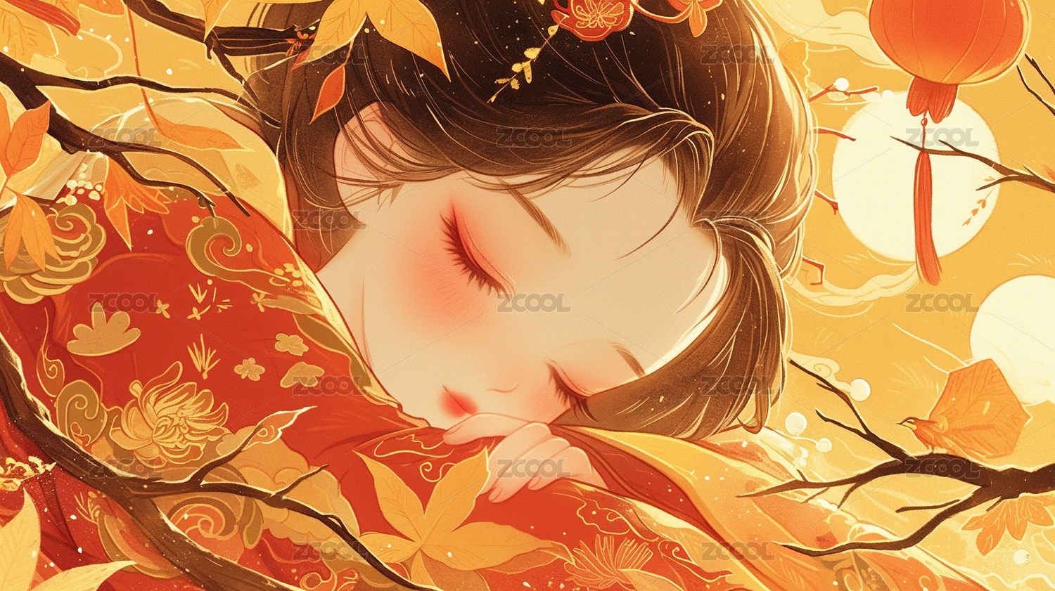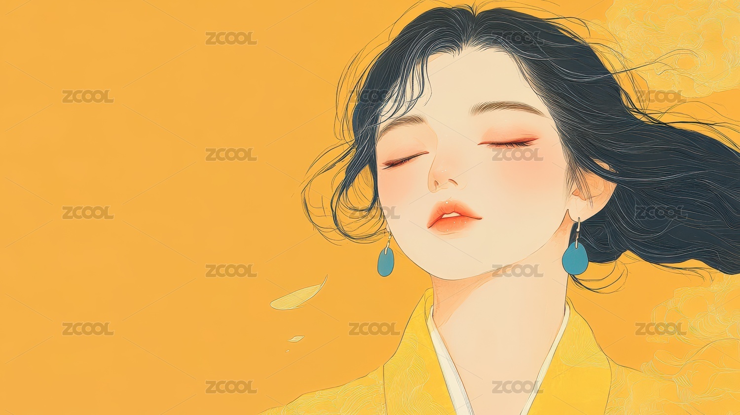 浮世绘人物女人头像细腻的线条闭眼睡觉