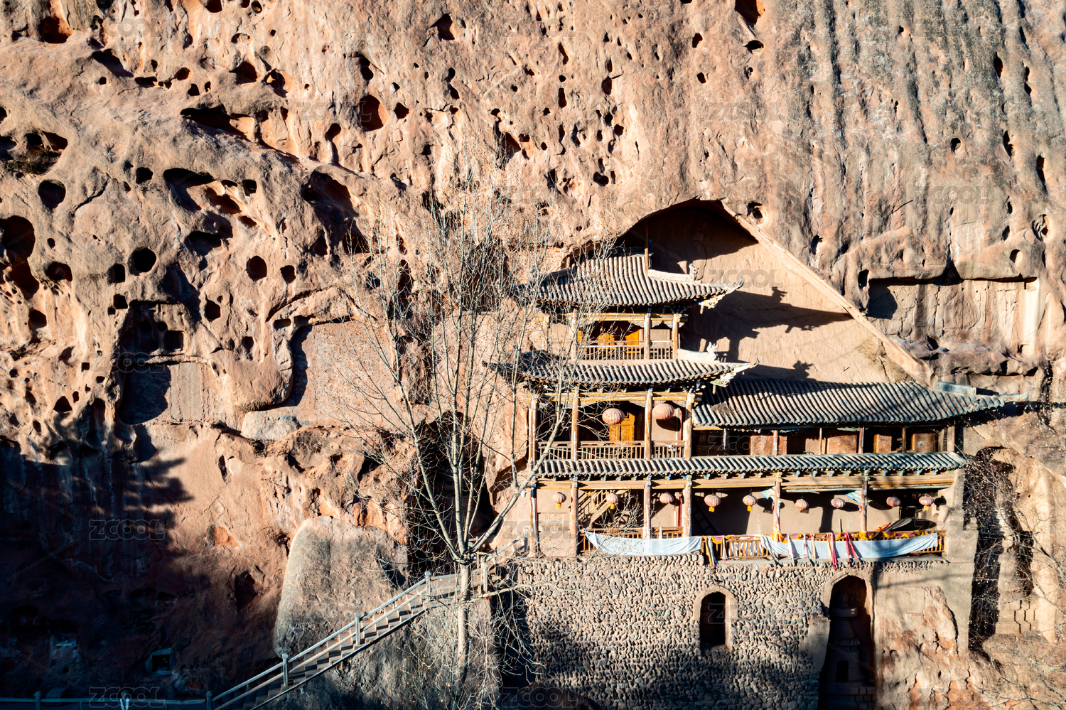 天水麦积山石窟悬崖上的洞窟