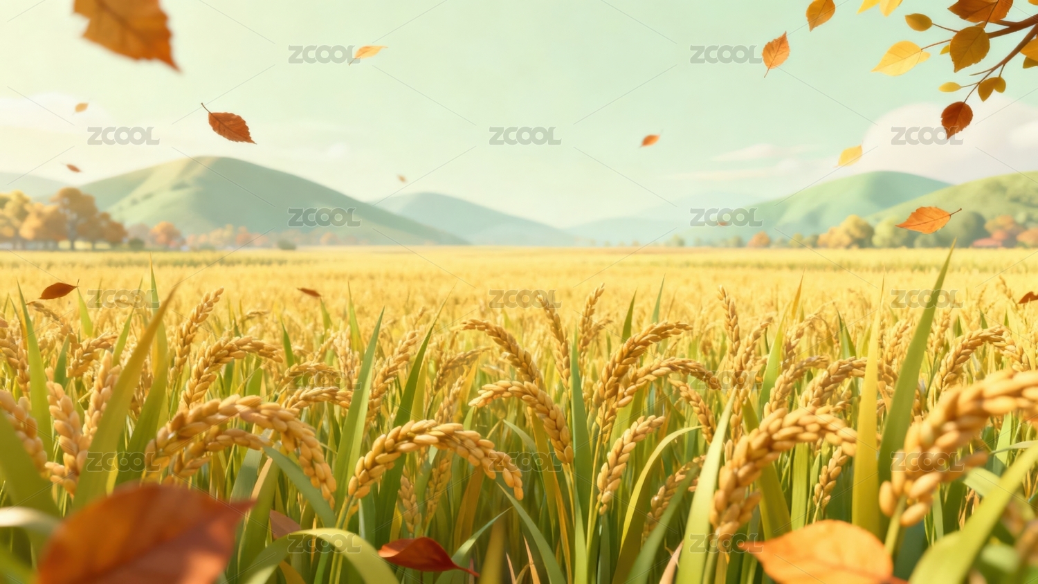 秋天,水稻,粮食,丰收,插画,农业,黄色,手绘,收获,大米