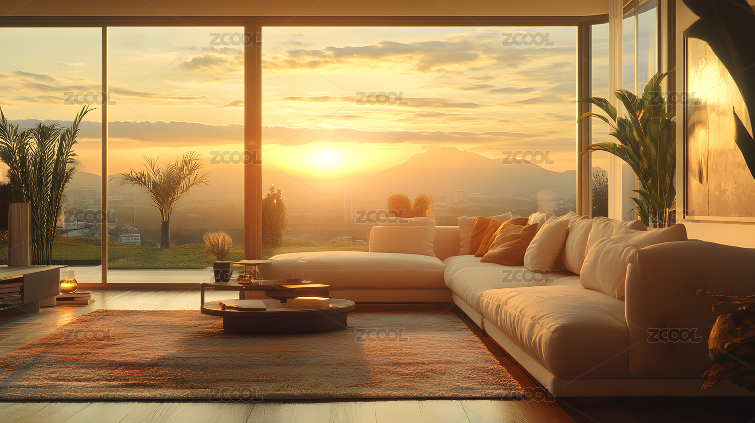 日落美景下的现代简约客厅