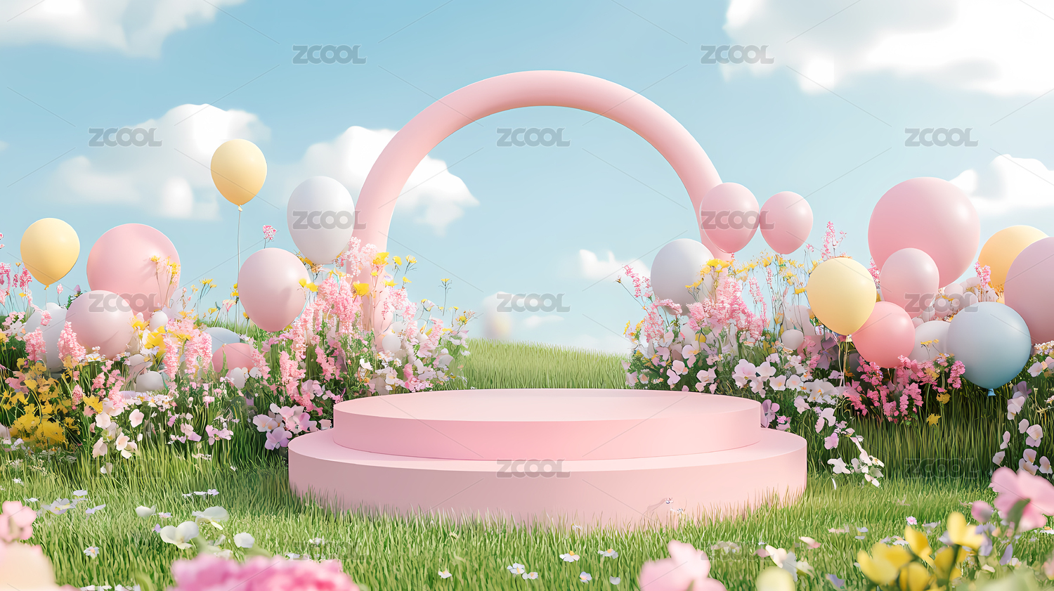 鲜花,气球,拱门,电商,产品展台,展台,3D,夏天,春天,清新