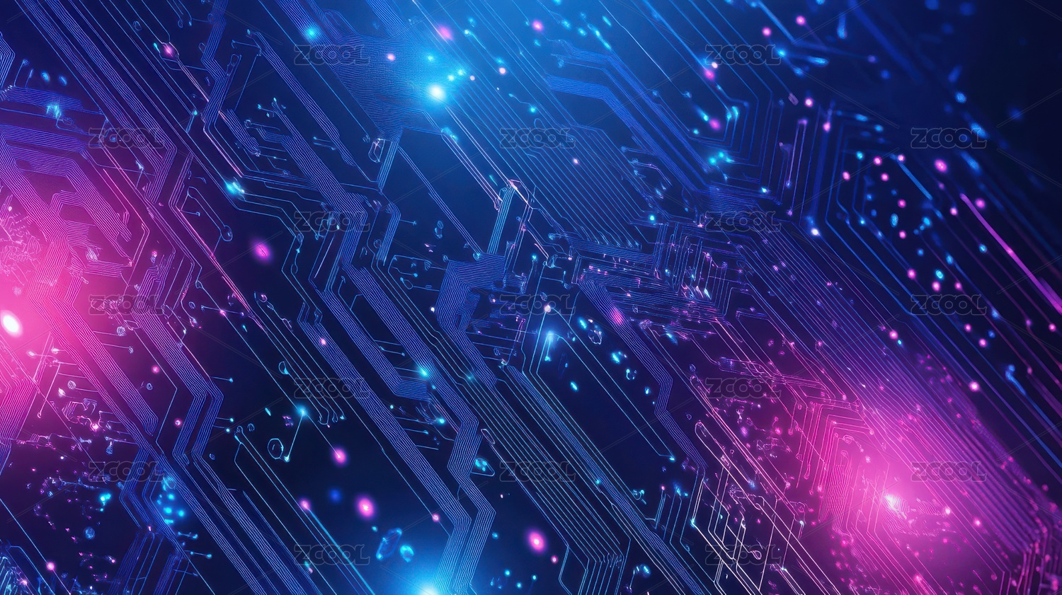 电子电路板特写电脑芯片,蓝色赛博电路未来