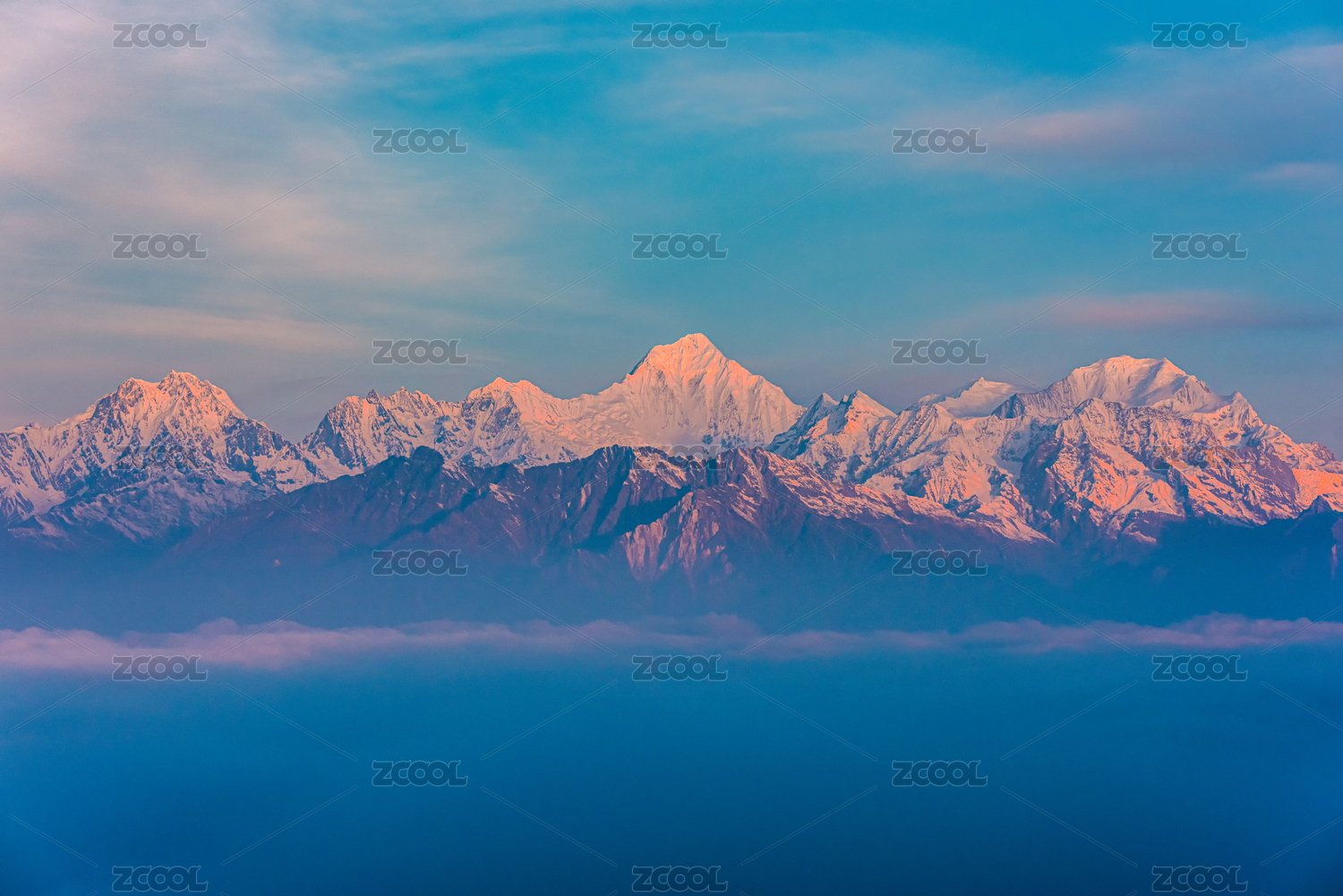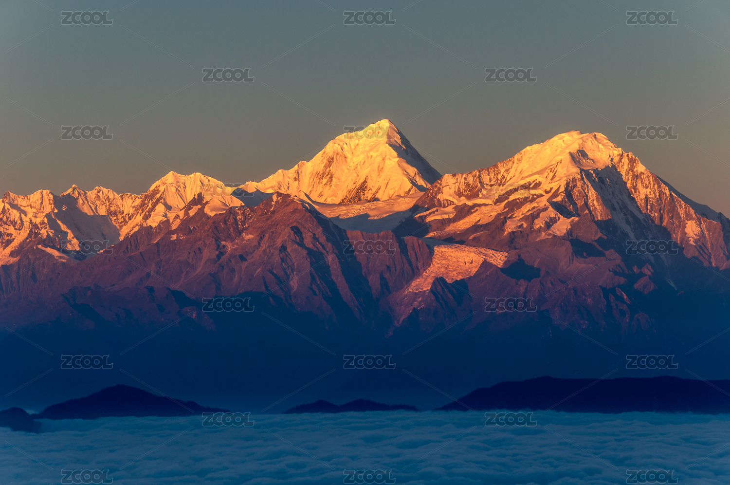 中国四川省甘孜州华尖山眺望贡嘎山日出