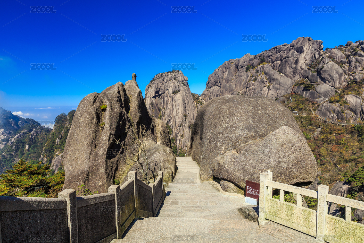 安徽省黄山市黄山风景区步行栈道谷建筑景观