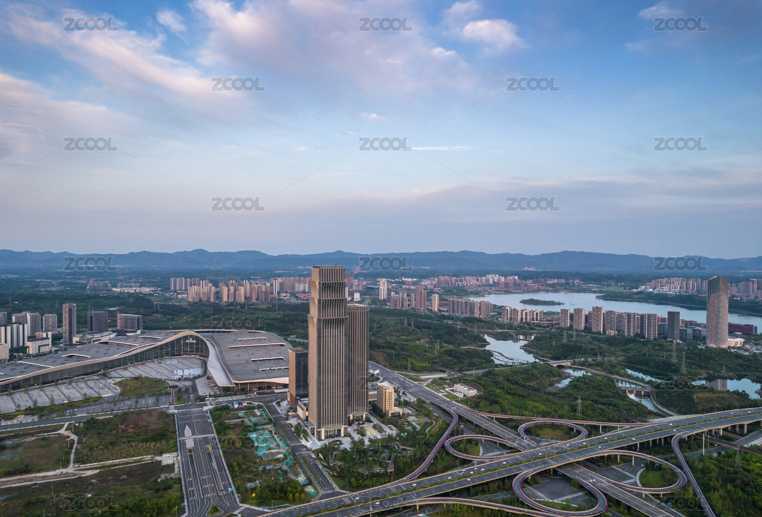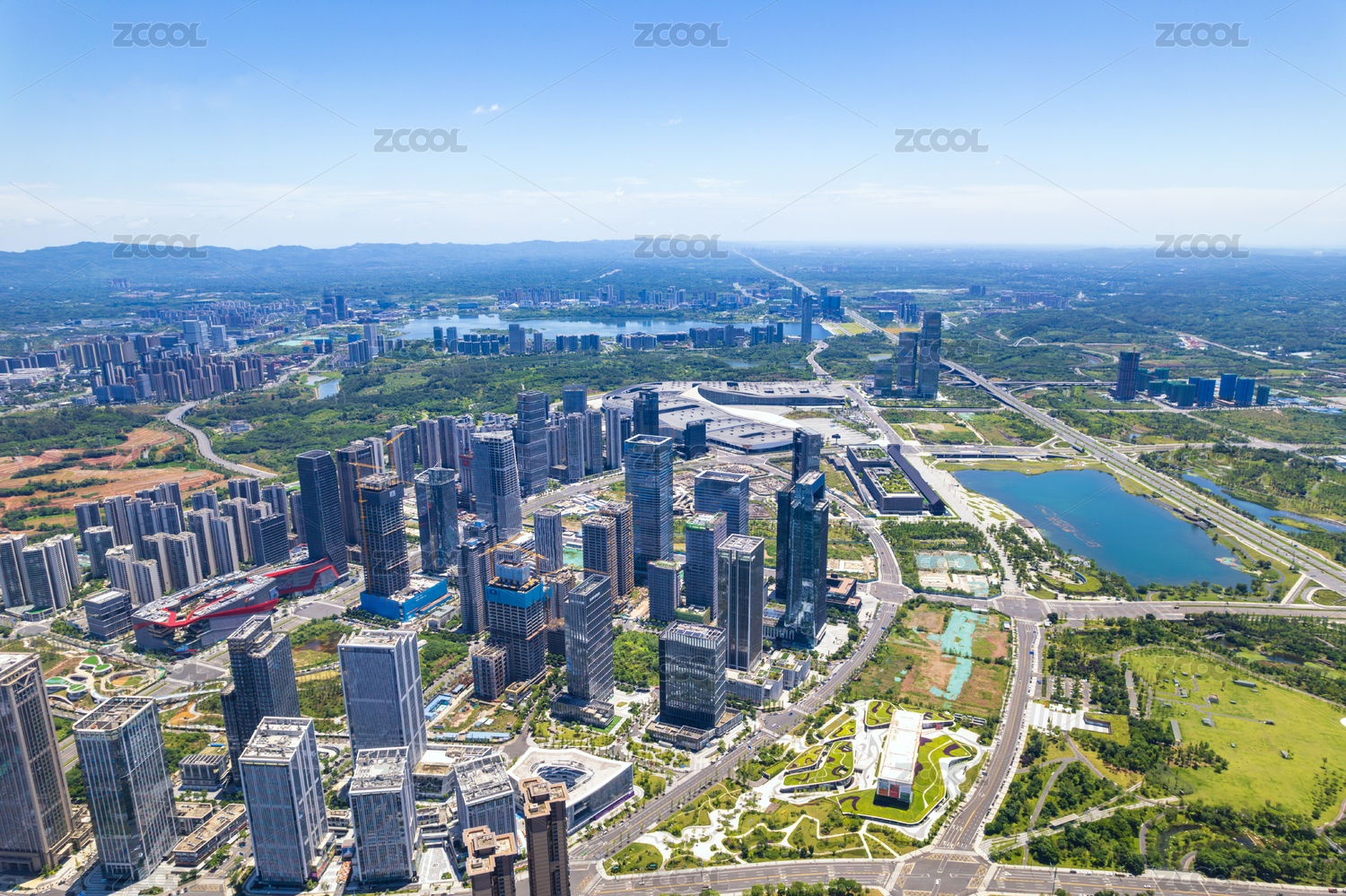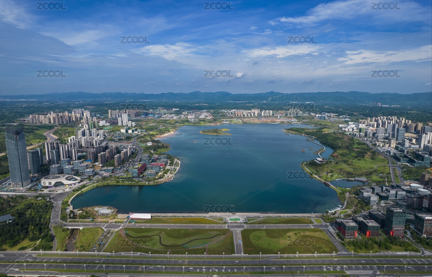 湖泊,航拍,四川,成都,天府新区,兴隆湖,产业园,鸟瞰,俯视,中国西部科学城