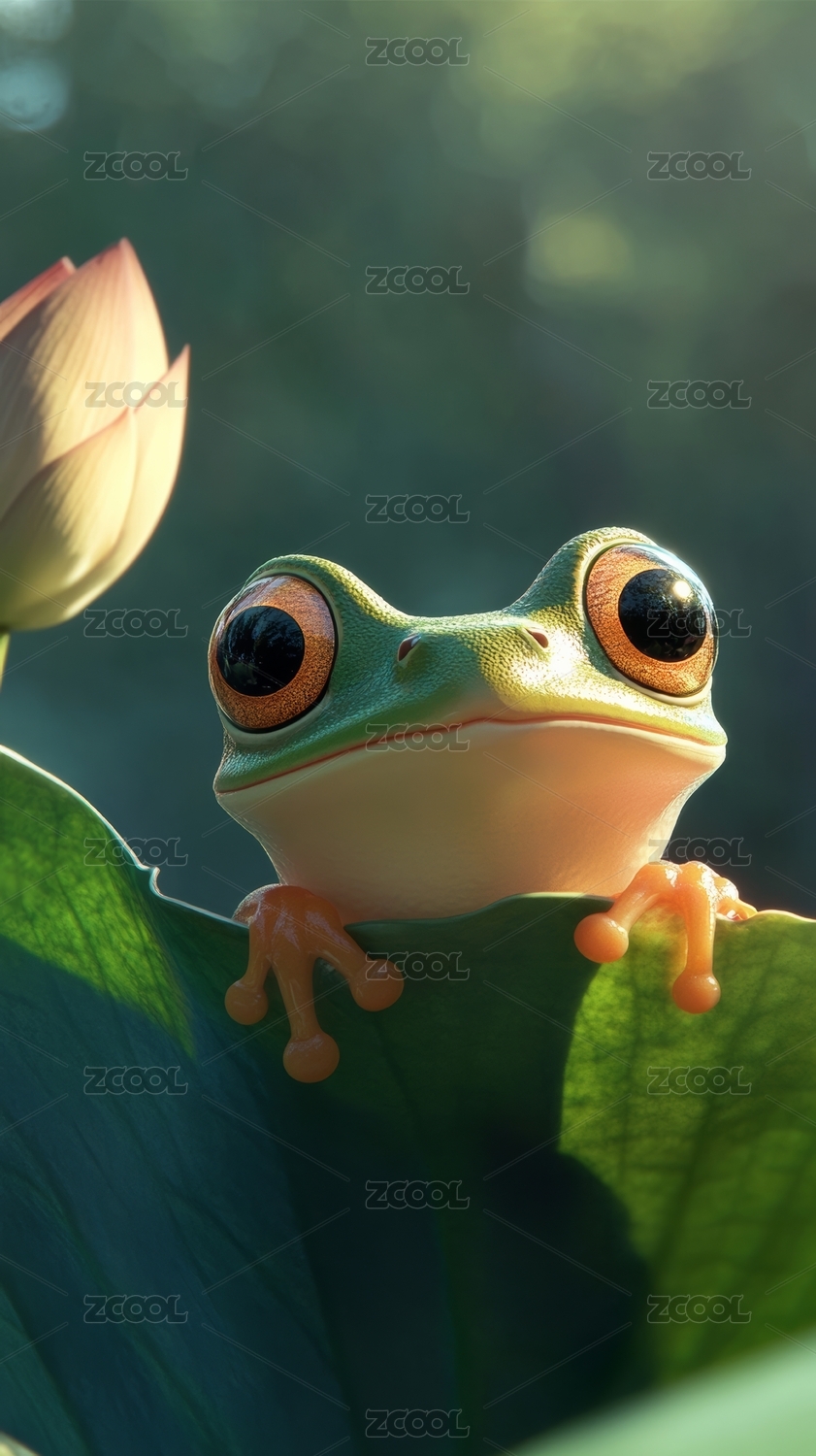 青蛙,卡通,插画,绿色背景,大眼睛,动物,橙色,热带,创意,童趣