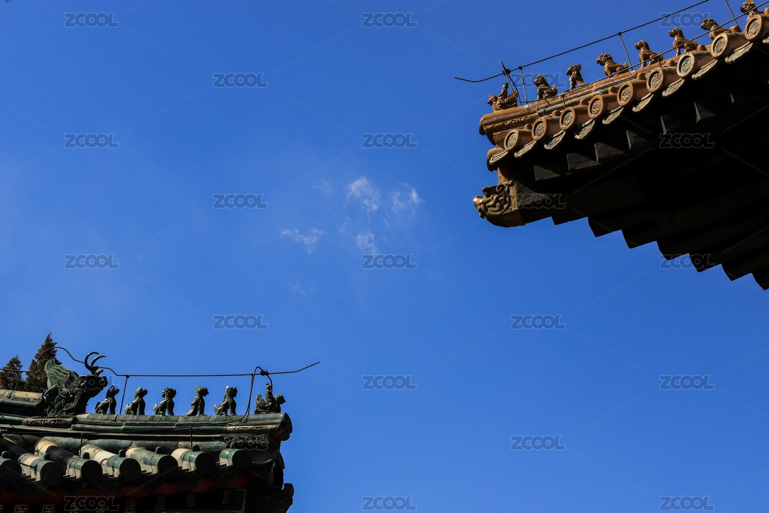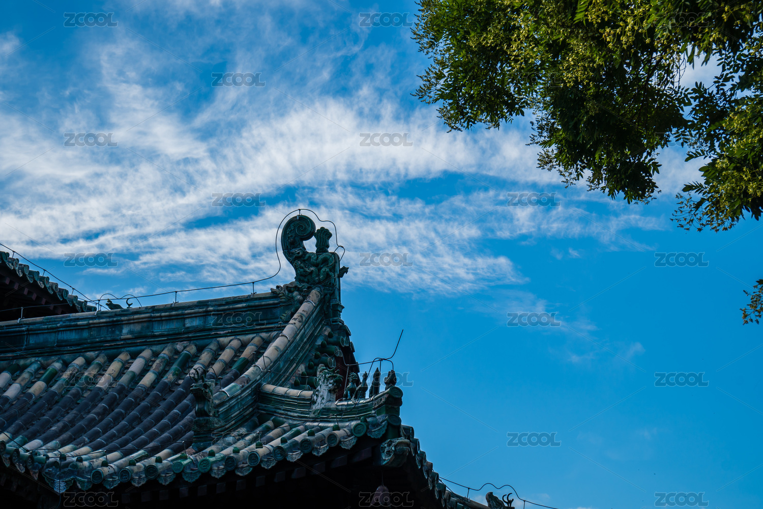 山西省朔州崇福寺弥陀殿古建筑屋顶琉璃脊饰