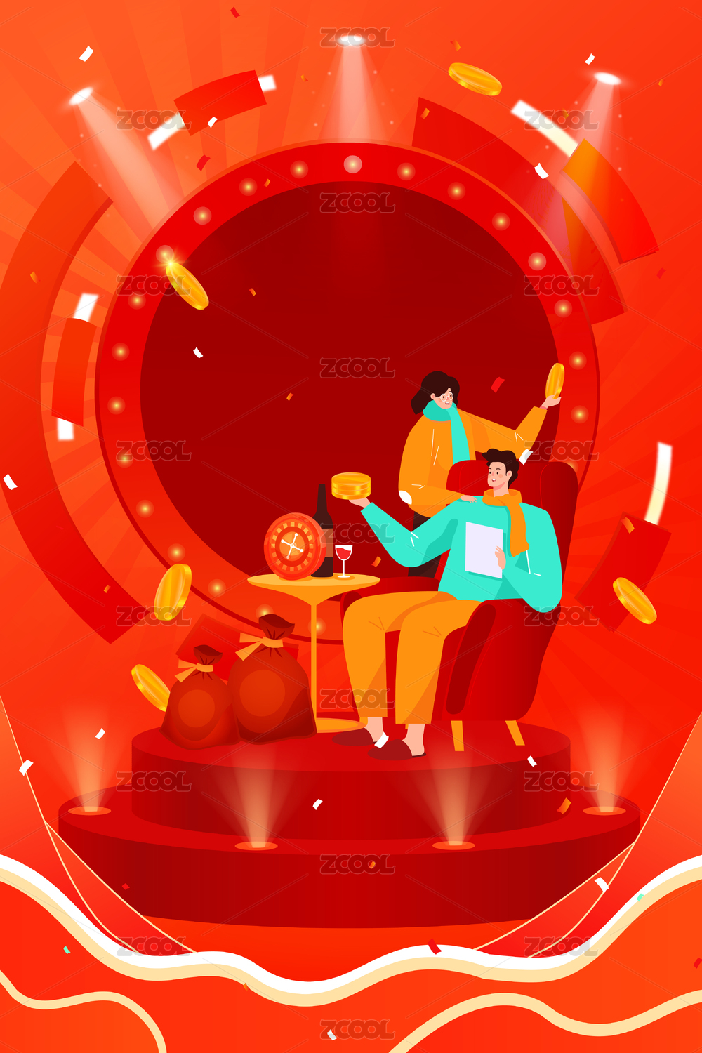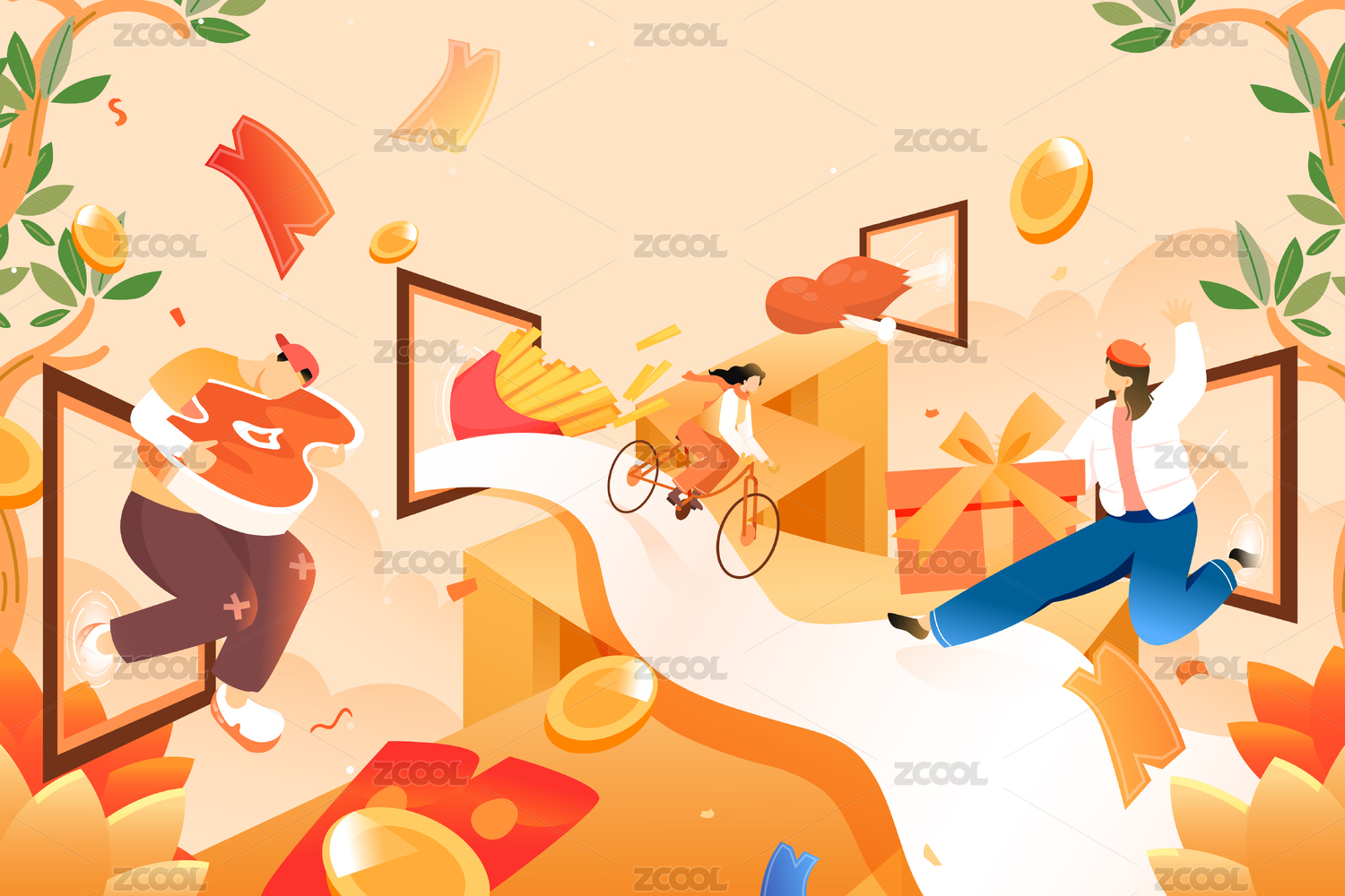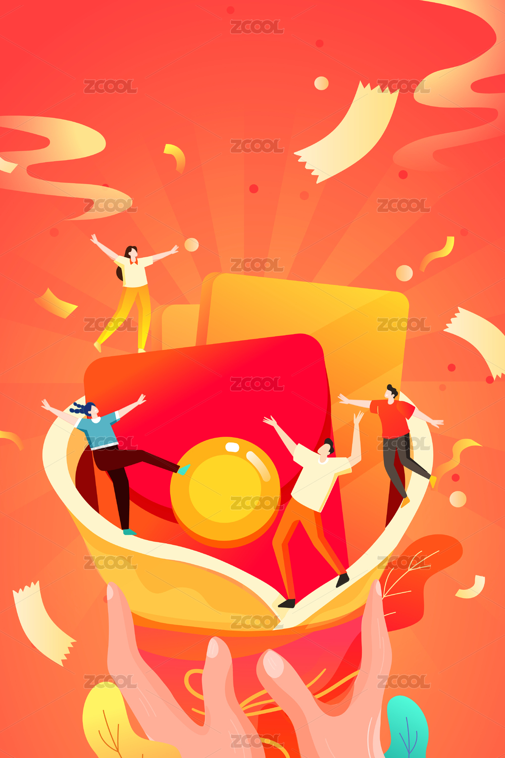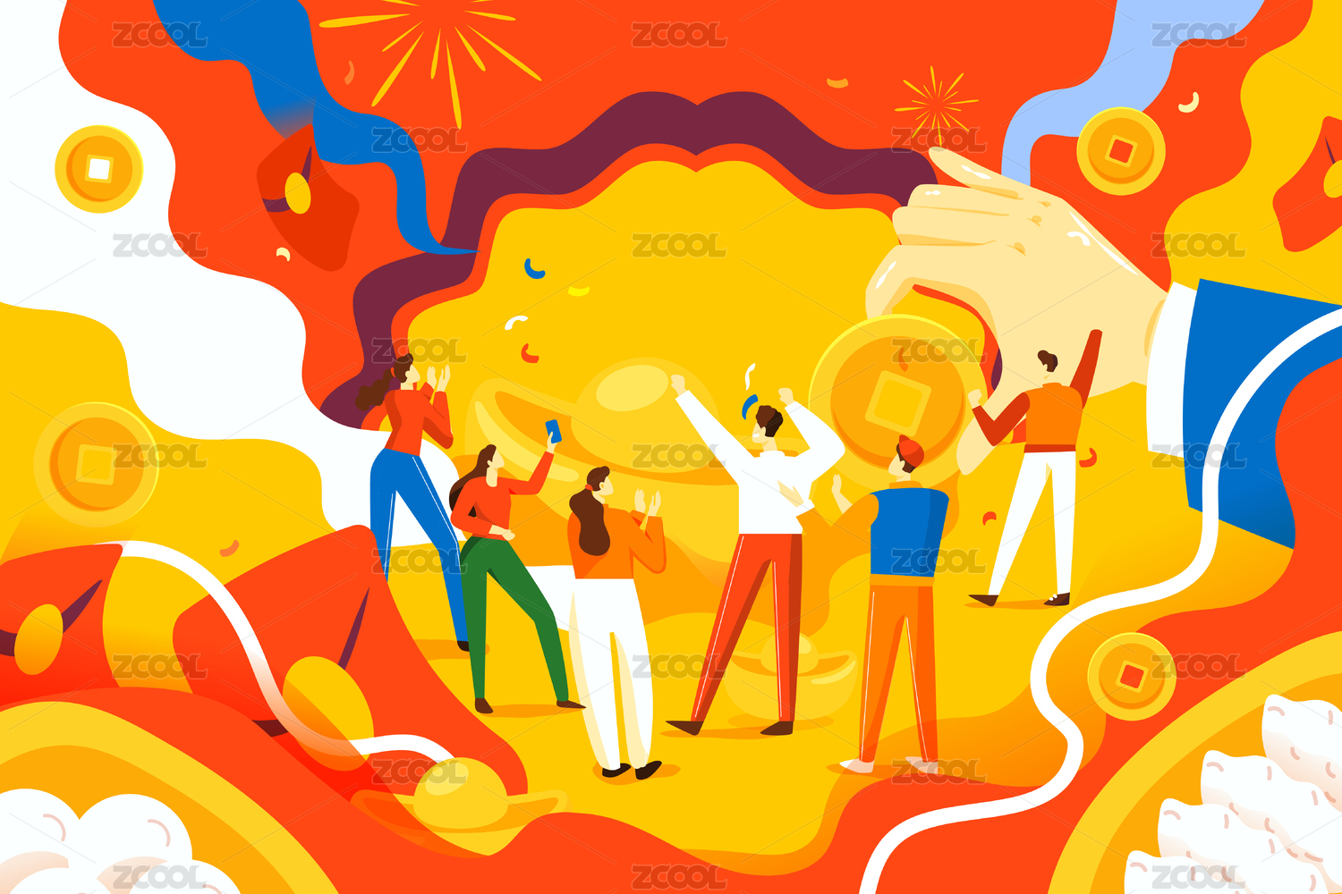 金融理财投资活动抽奖钱币金币红包矢量插画