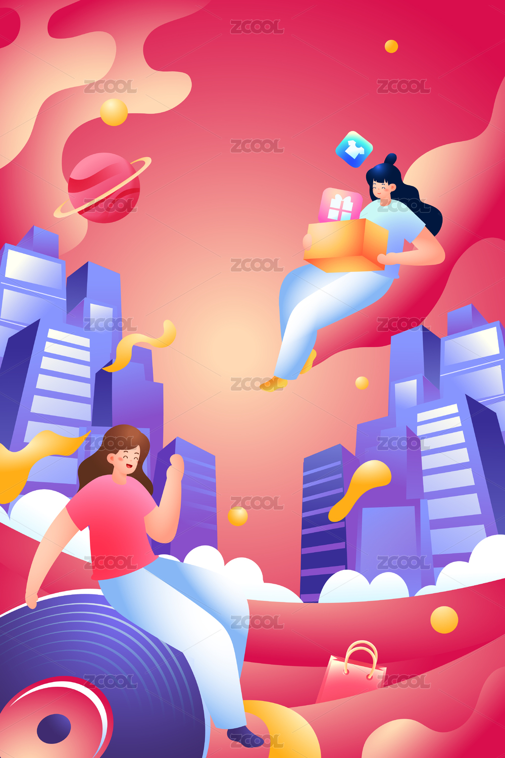 矢量,卡通,渐变,插画,插图,背景,扁平,节日,风格,元素