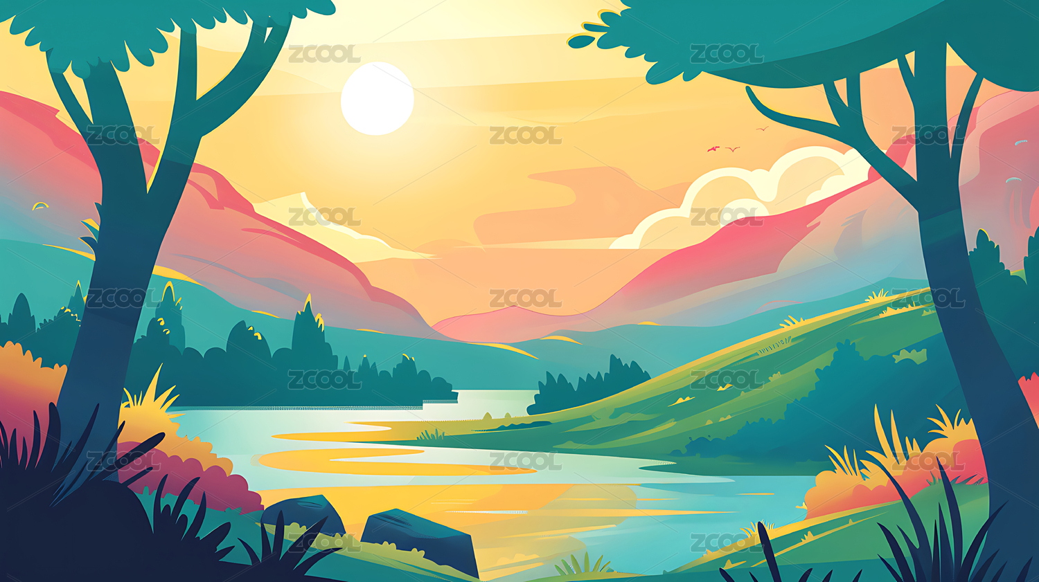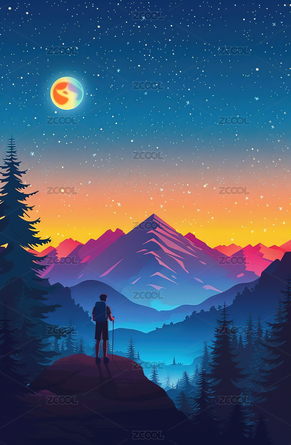 矢量,卡通,渐变,扁平,插画,插图,夏季,夏天,清新,人