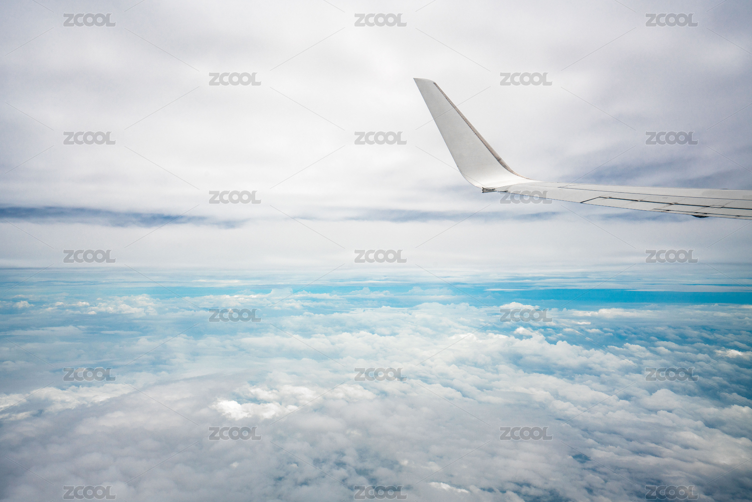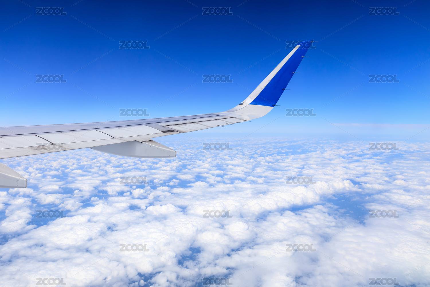 飞机窗外的云层与蓝天