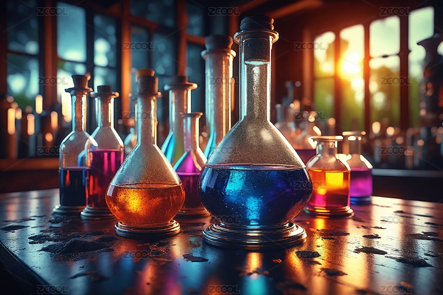 实验室玻璃器皿中彩色化学物质的特写镜头