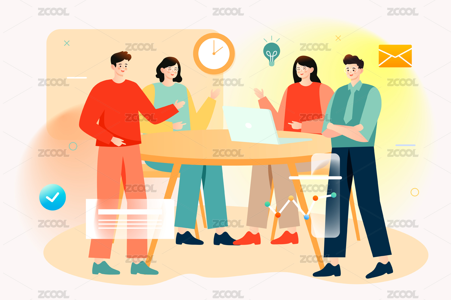 虚拟的人物社交沟通概念商业扁平矢量手绘
