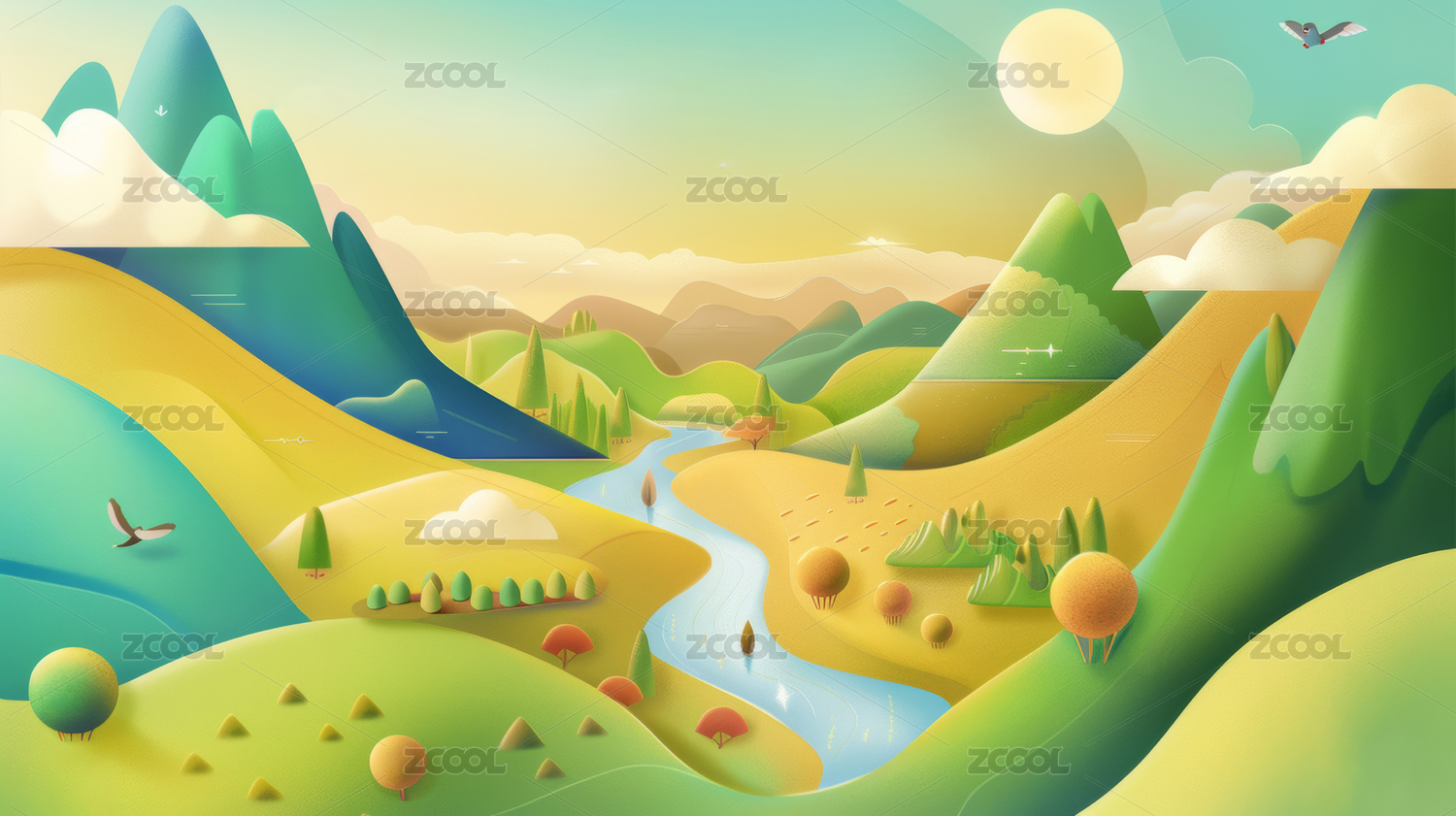矢量,扁平,插画,插图,卡通,渐变,背景,元素,出游,风景