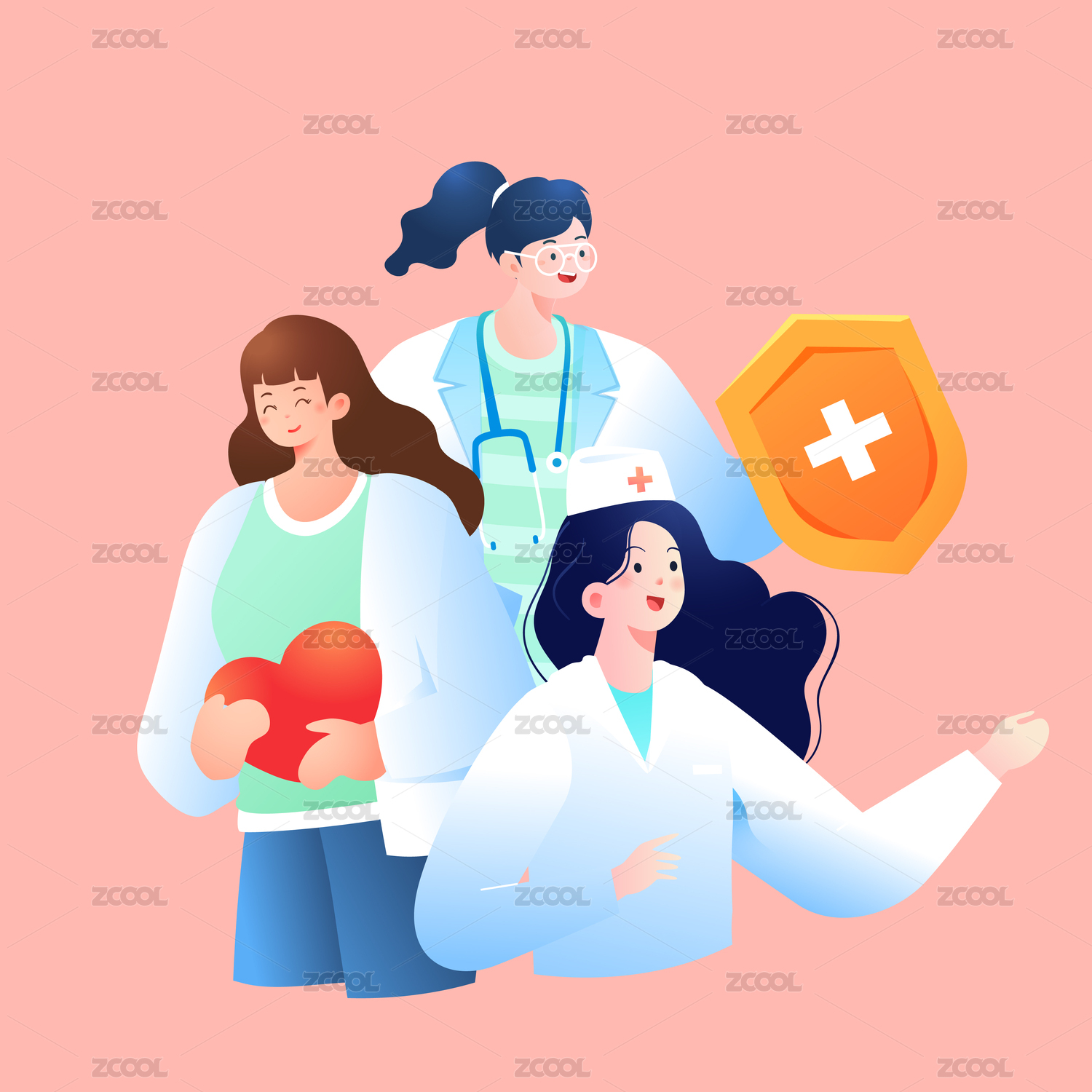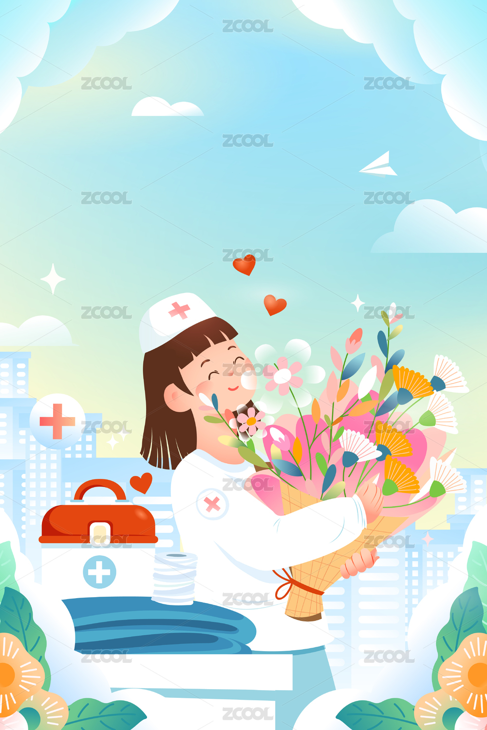 美丽白衣天使庆祝国际护士节医疗爱心插画